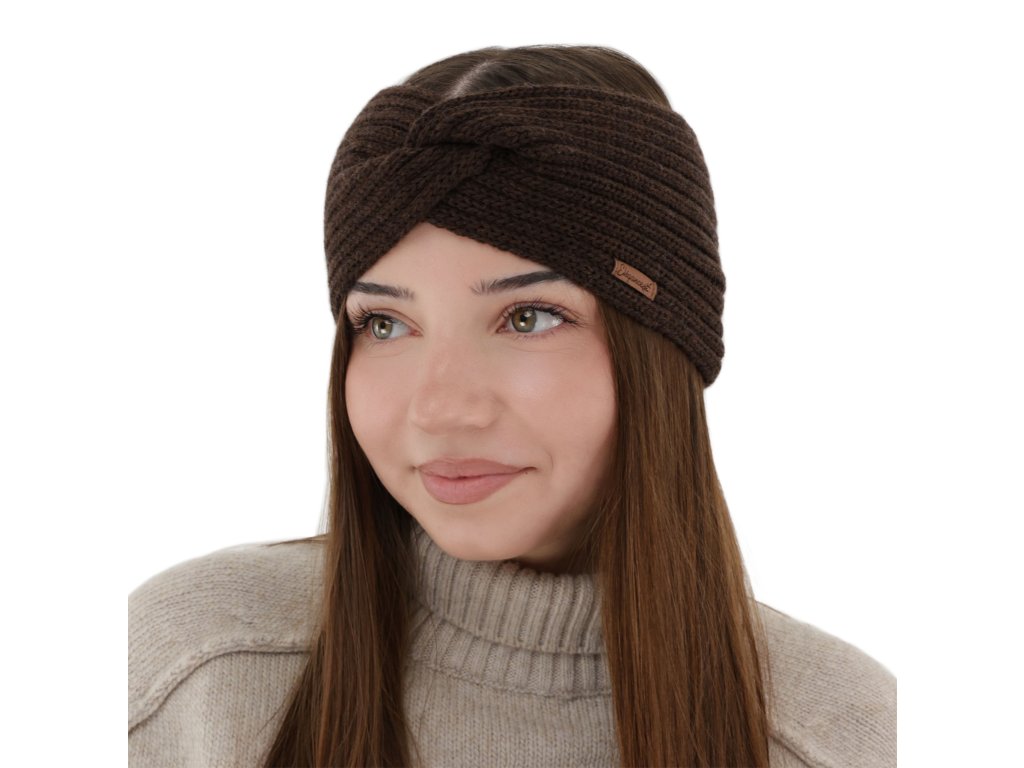 Dámska jarná merino čelenka hnedá