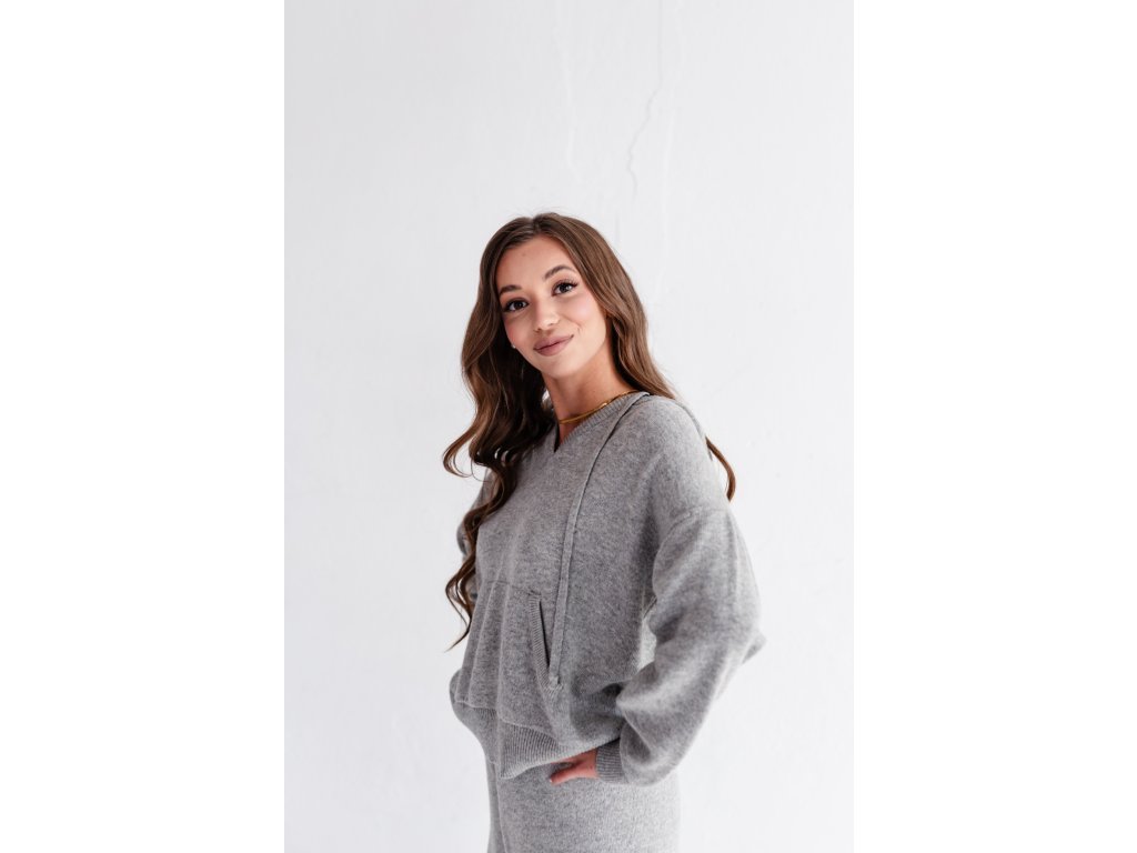 Sivá dámska vlnená mikina z merino vlny s kapucňou a praktickým vreckom kangaroo je ideálnou voľbou pre štýlové a teplé outfity počas chladných dní.