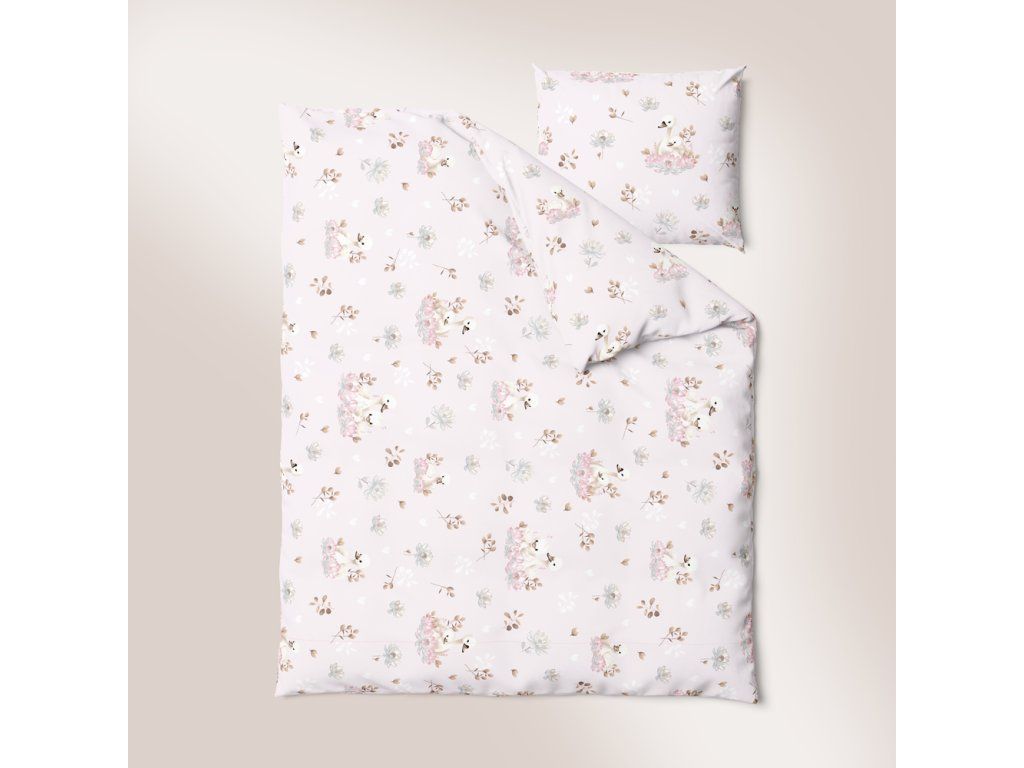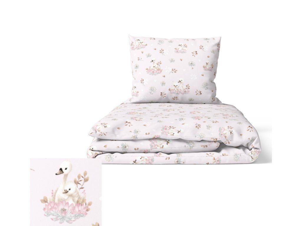 DETSKÁ POSTEĽNÁ BIELIZEŇ 100x140 + 50x60 100% BAVLNA certifikát 2-dielna do postieľky Labute ružové