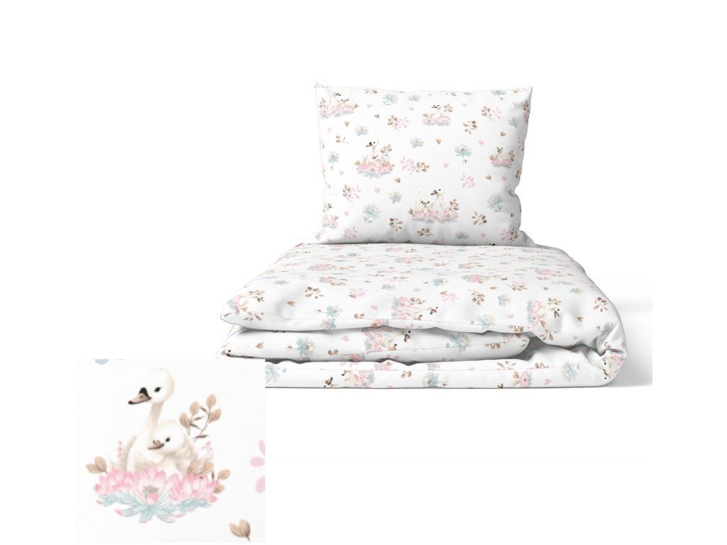 DETSKÁ POSTEĽNÁ BIELIZEŇ 100x140 + 50x60 100% BAVLNA certifikát 2-dielna do postieľky Labute