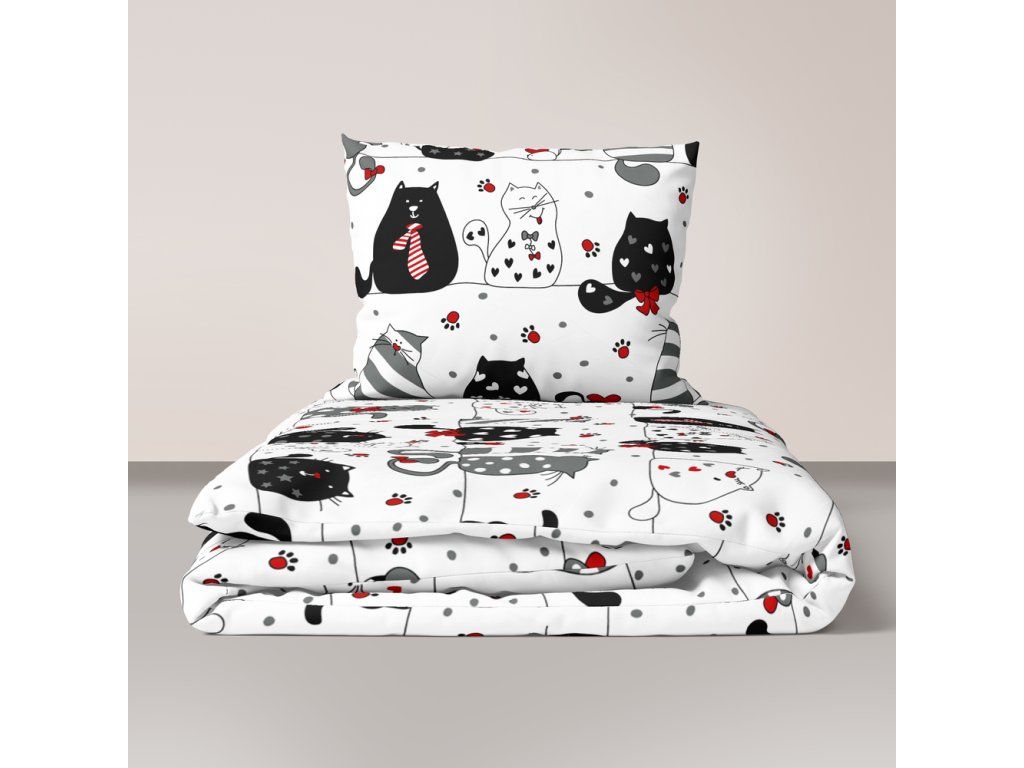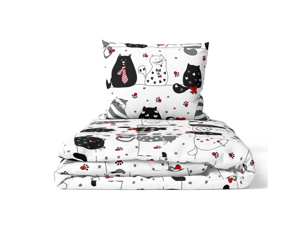 DETSKÁ POSTEĽNÁ BIELIZEŇ 100x140 + 50x60 100% BAVLNA certifikát 2-dielna do postieľky Šialené mačky čierne na bielom s červenou