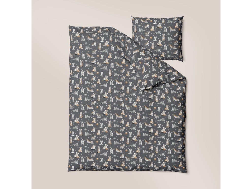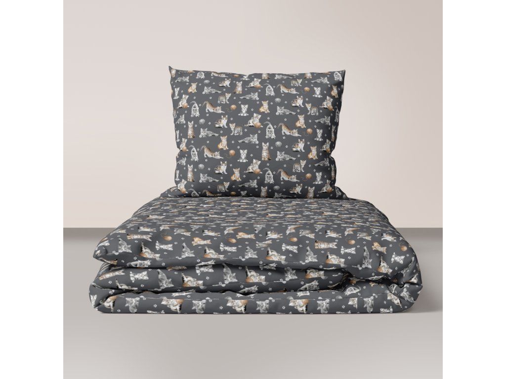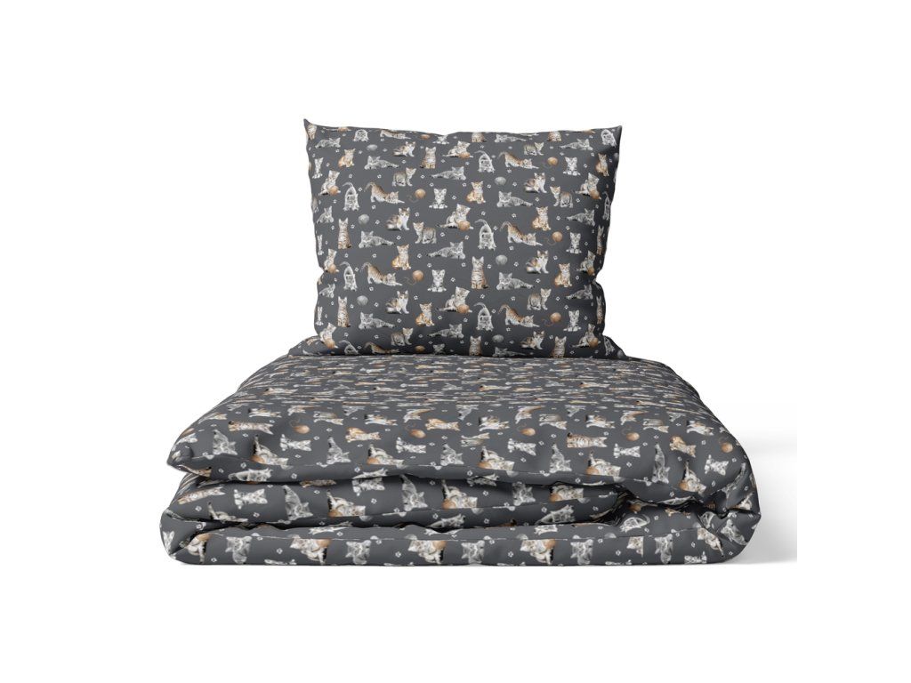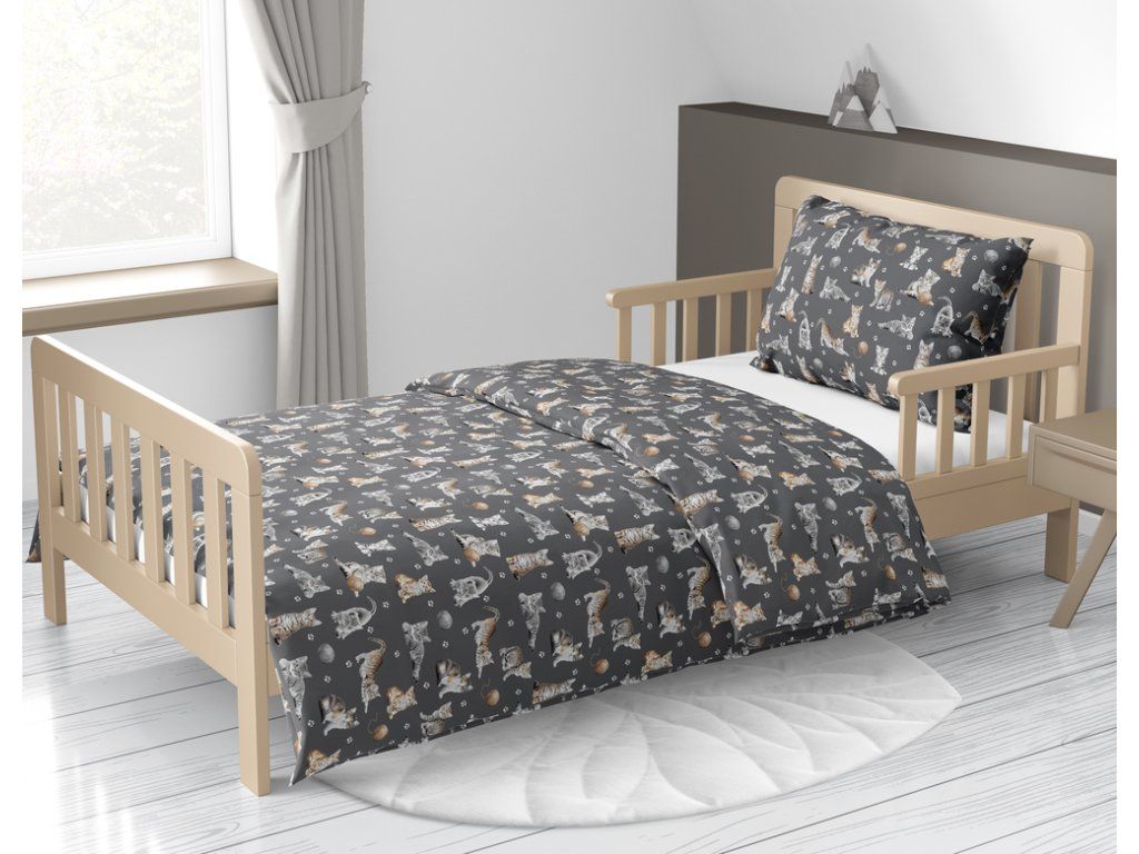 DETSKÁ posteľná bielizeň 160x200 pre dieťa 100% bavlna CERTIFIKÁT Kotki Łapki Grafit