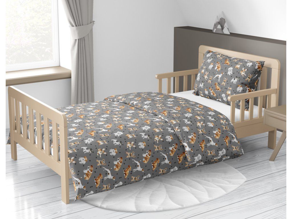 DETSKÁ posteľná bielizeň 160x200 pre dieťa 100% bavlna CERTIFIKÁT Pieski łapki Sivá