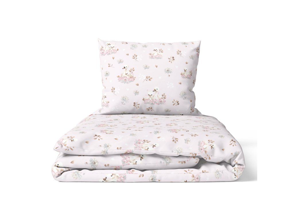 DETSKÁ POSTEĽNÁ BIELIZEŇ 90x120 + 40x60 100% BAVLNA certifikát 2-dielna do postieľky Labute ružové