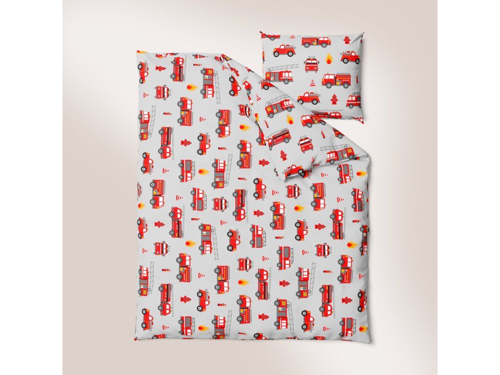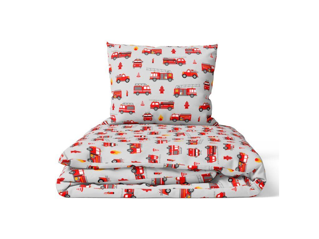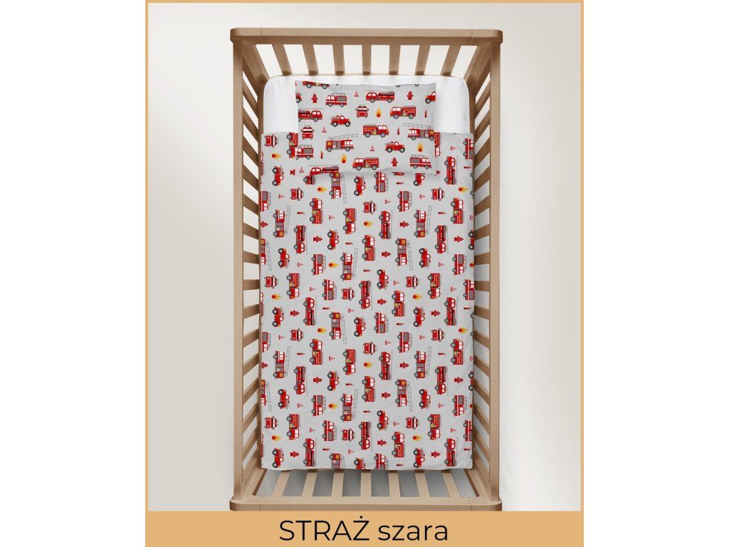 DETSKÁ POSTEĽNÁ BIELIZEŇ 90x120 + 40x60 100% BAVLNA certifikát 2-dielna do postieľky Požiarnici sivá
