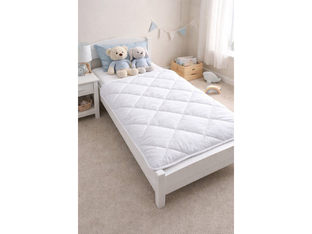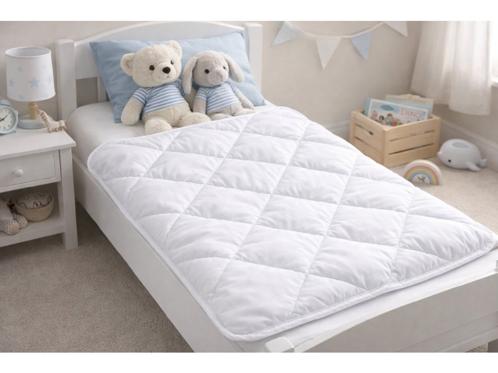 Detská prikrývka vo veľkosti 90x120cm v sade s detským vankúšom s nízkym profilom, vo veľkosti 40x60cm. Veľmi kvalitný produkt za atraktívnu cenu. Prikrývka je určená na celoročné používanie, je antialergická, prešívaná – vďaka čomu sa výplň časom neposúva vo vnútri prikrývky.