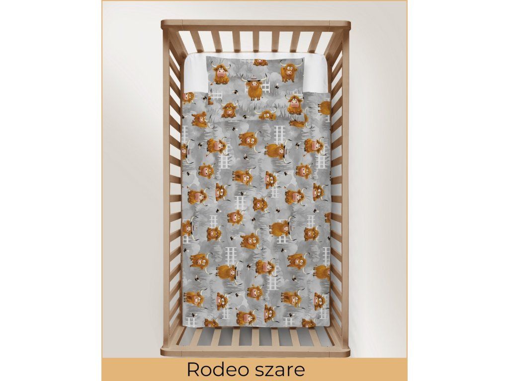 DETSKÉ OBLIEČKY 100x140 + 50x60 100% BAVLNA certifikát 2-dielne do postieľky Rodeo Sivé