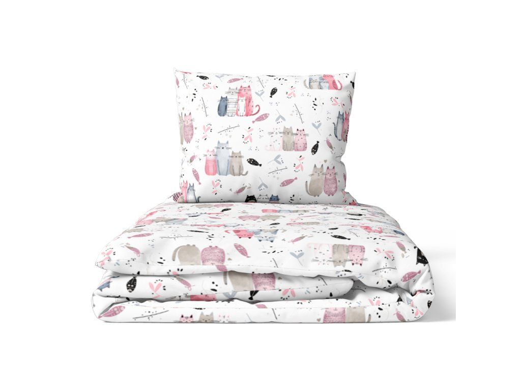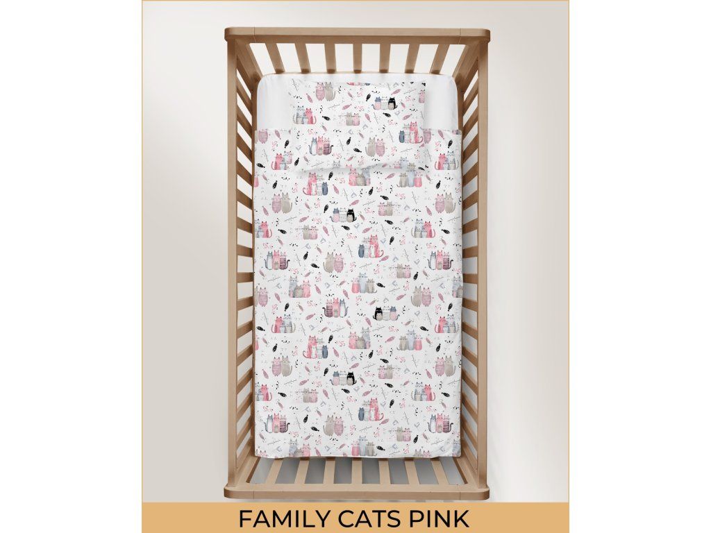 DETSKÉ OBLIEČKY 90x120 + 40x60 100% BAVLNA certifikát 2-dielne do postieľky FAMILY CATS PINK