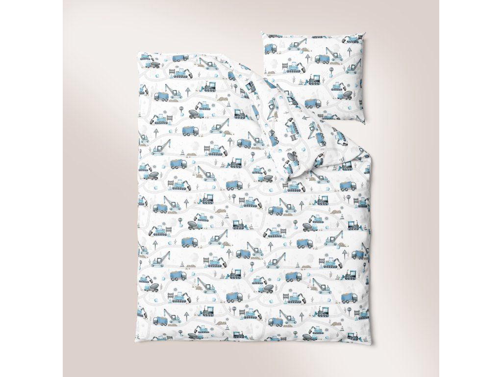 Detské posteľné obliečky 140x200 pre dieťa 100% bavlna CERTIFIKÁT stavenisko modré