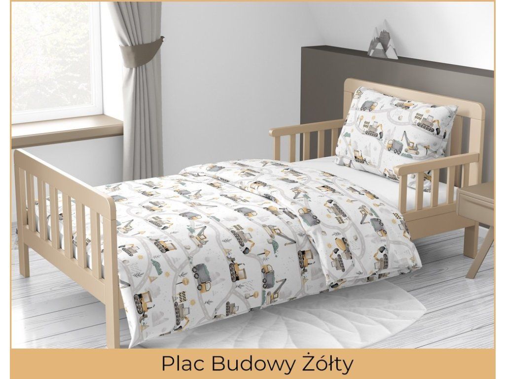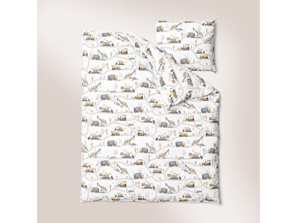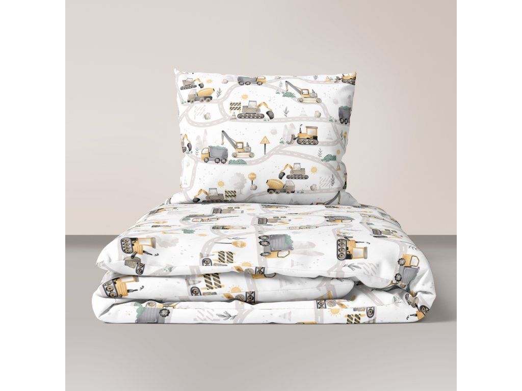 Detské posteľné obliečky 140x200 pre dieťa 100% bavlna CERTIFIKÁT stavenisko žlté