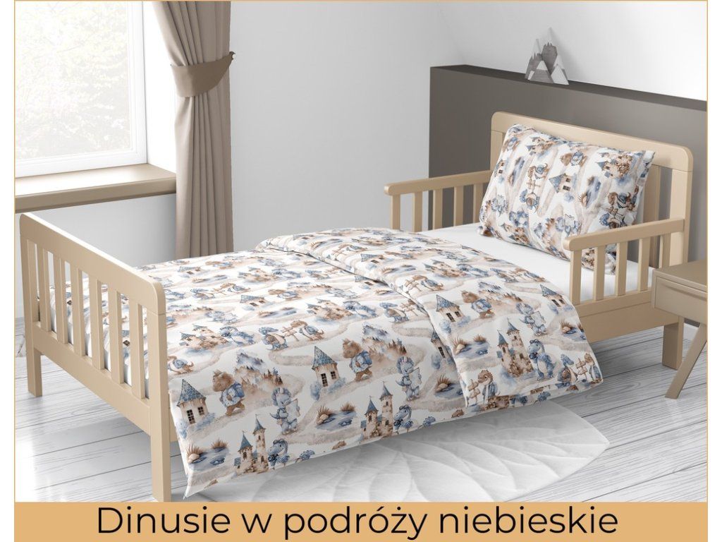 DETSKÉ POSTEĽNÉ OBLIEČKY 160x200 pre dieťa 100% bavlna CERTIFIKÁT - Dino v cestovaní modré