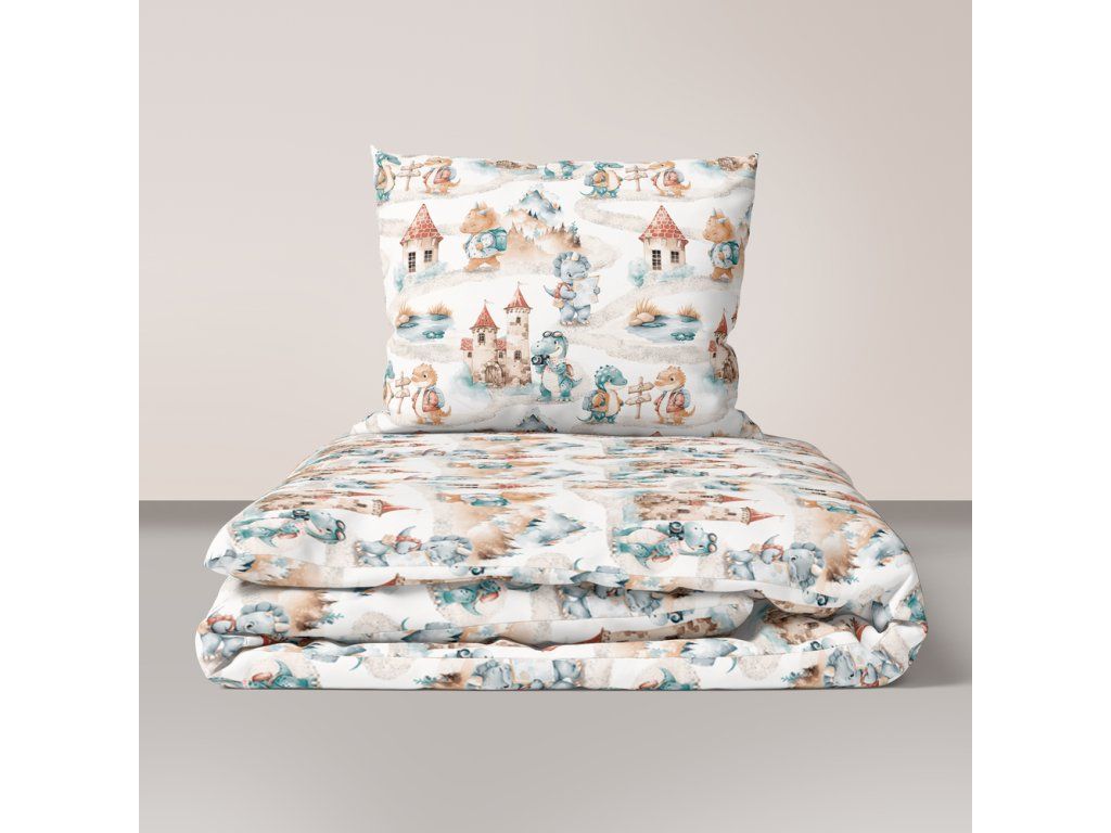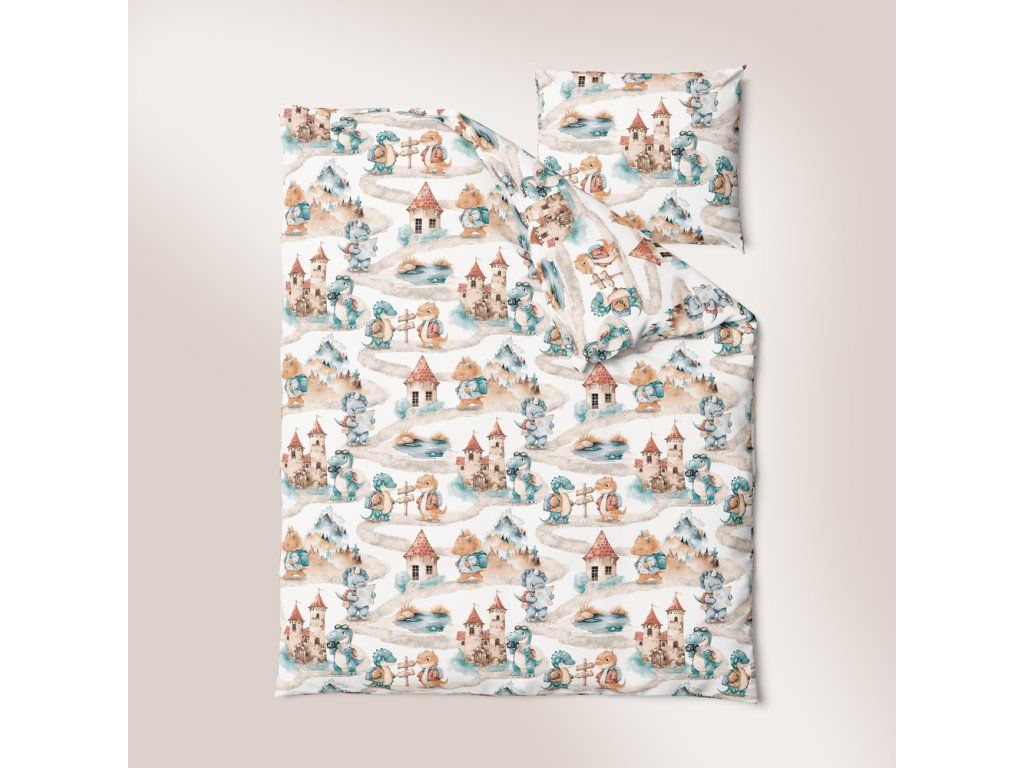 DETSKÉ POSTEĽNÉ OBLIEČKY BAVLNA 100x140 + 50x60 100% BAVLNA certifikát 2-dielna do postieľky Dino v cestovaní zelené