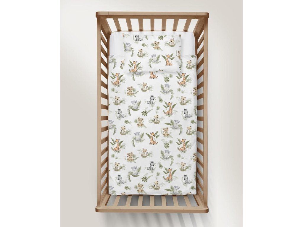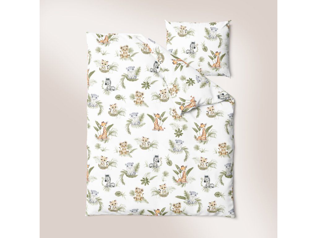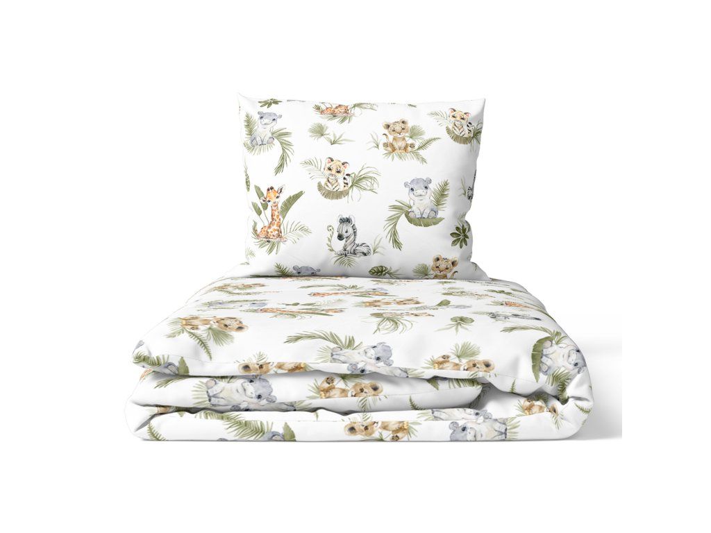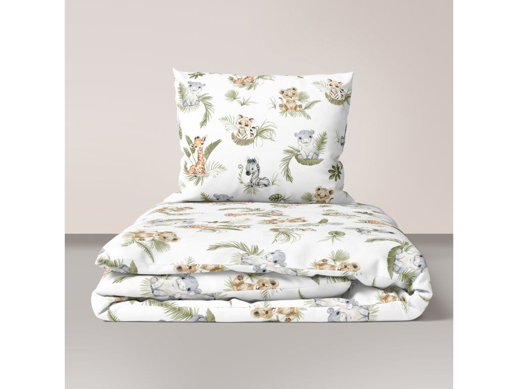 DETSKÉ POSTEĽNÉ OBLIEČKY BAVLNA 100x140 + 50x60 CERTIFIKÁT Divoká Afrika zelená