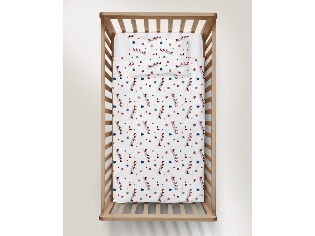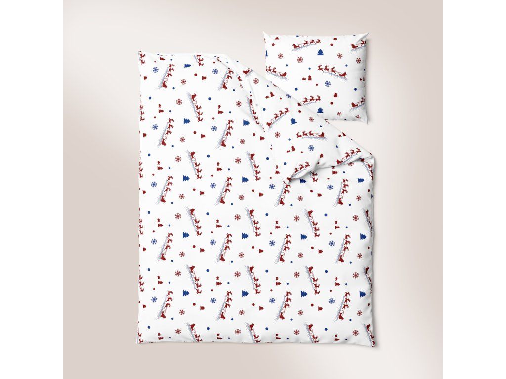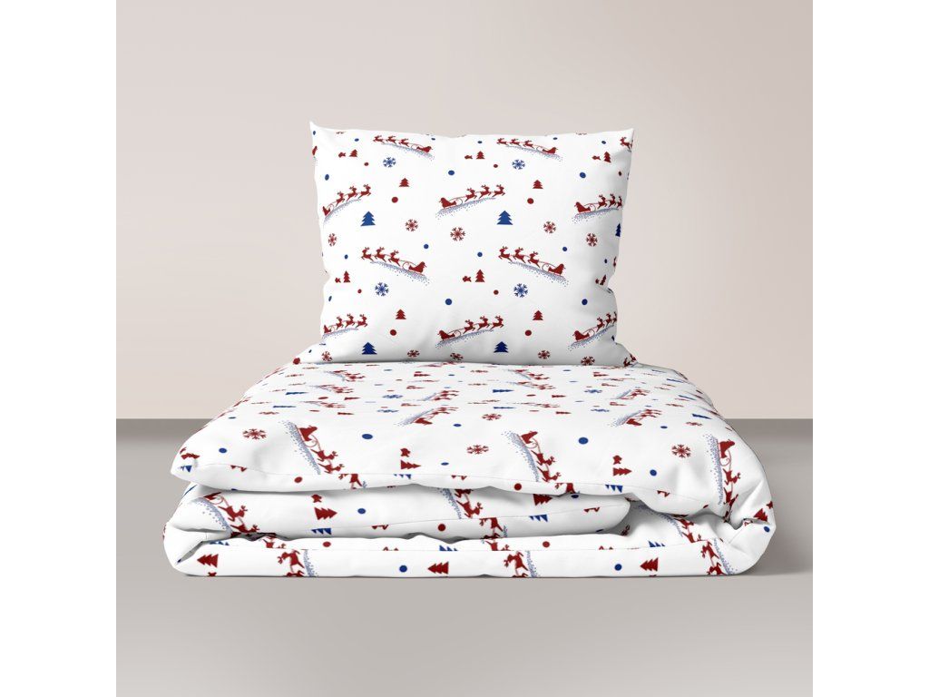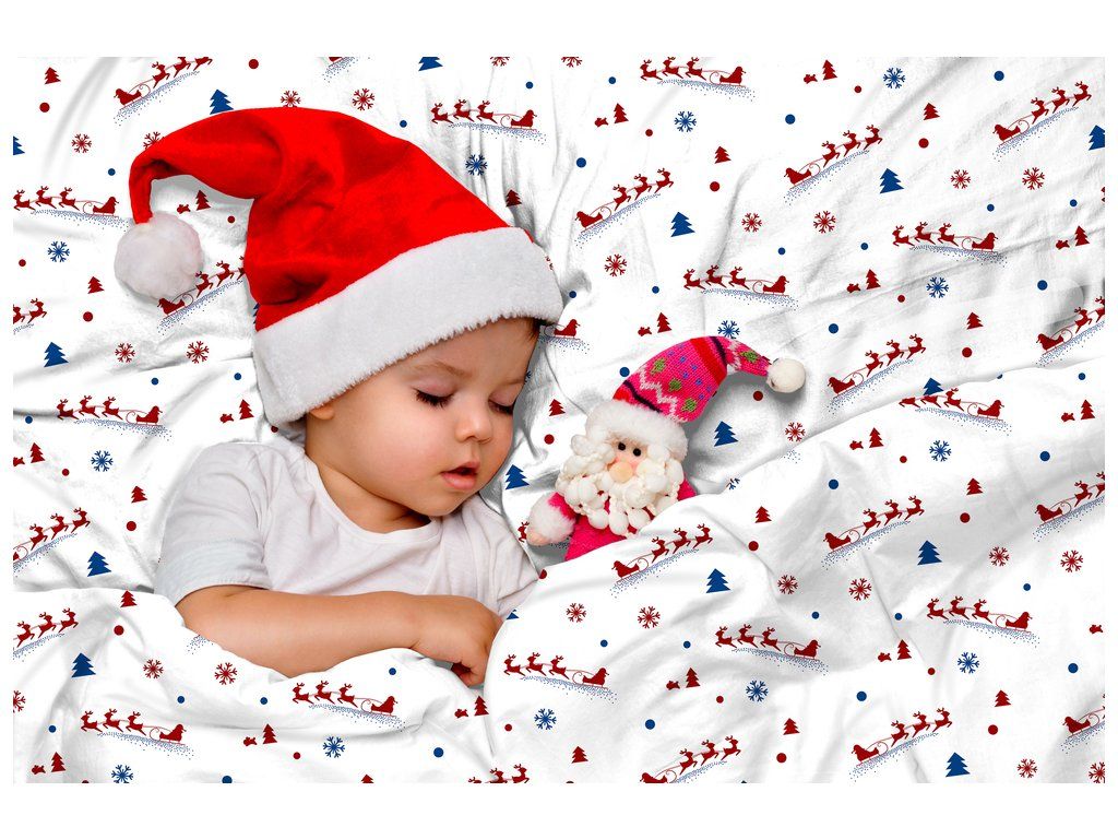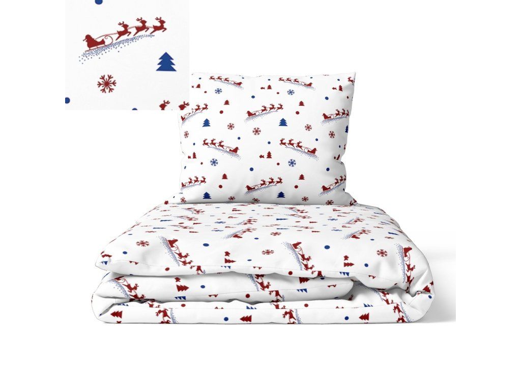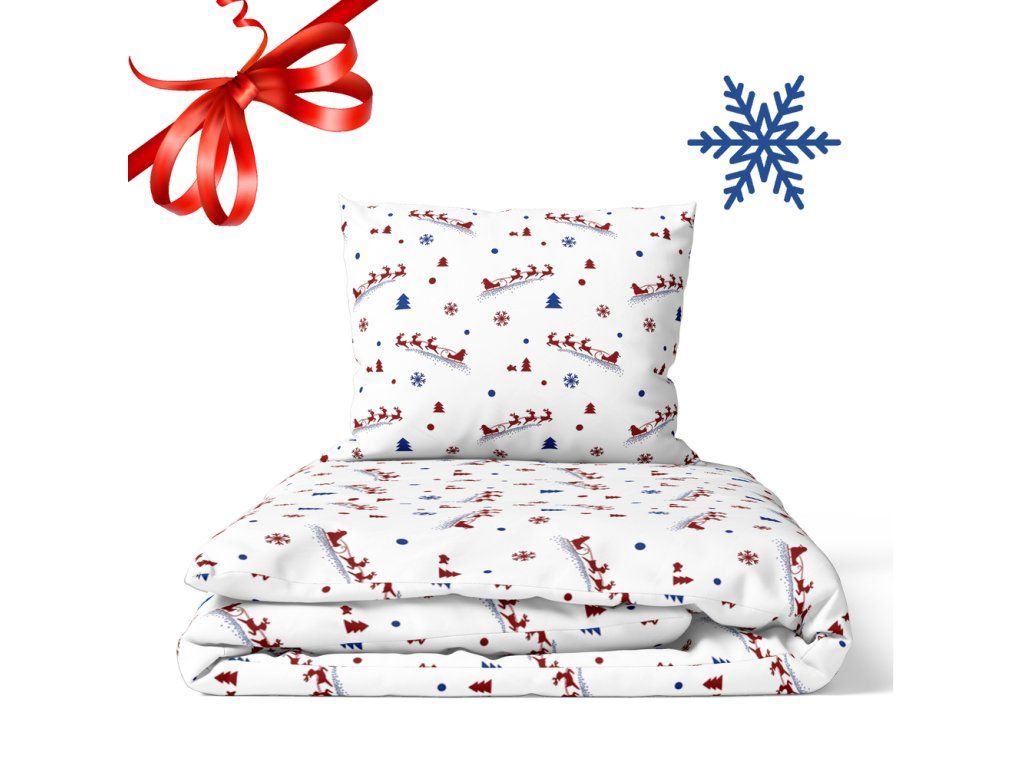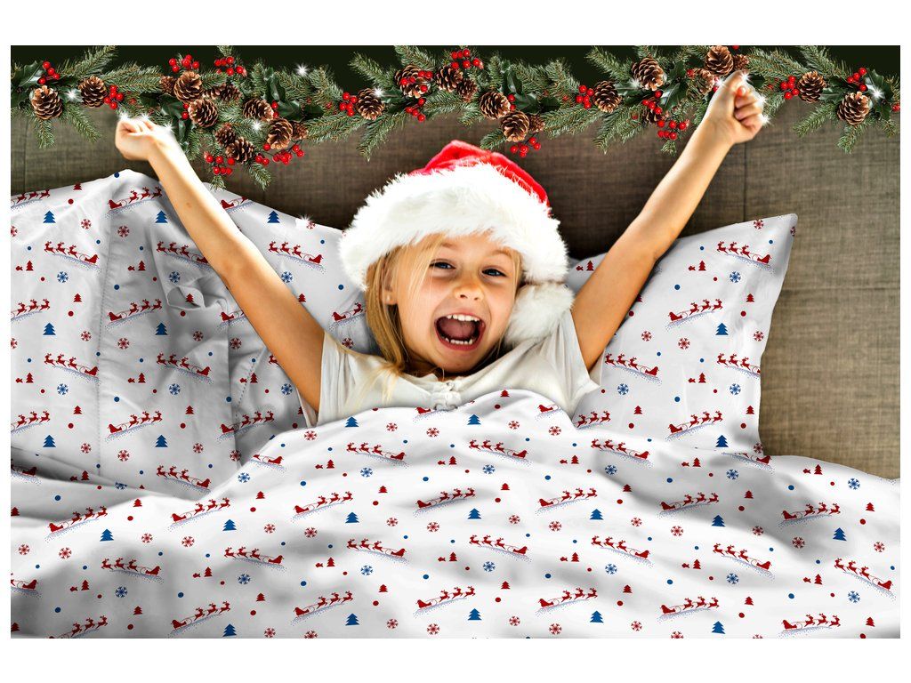DETSKÉ VIANOČNÉ OBLIEČKY 100x140 + 50x60 100% BAVLNA certifikát 2-dielne do postieľky Uháňajúci Mikuláš