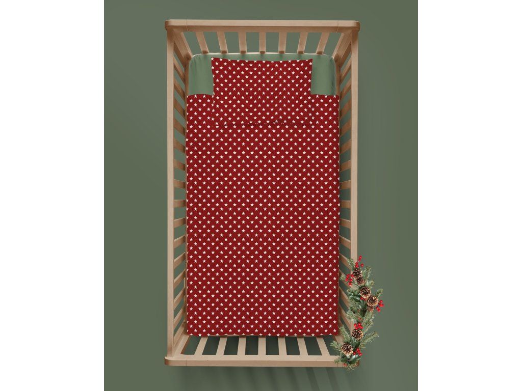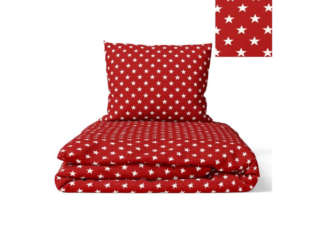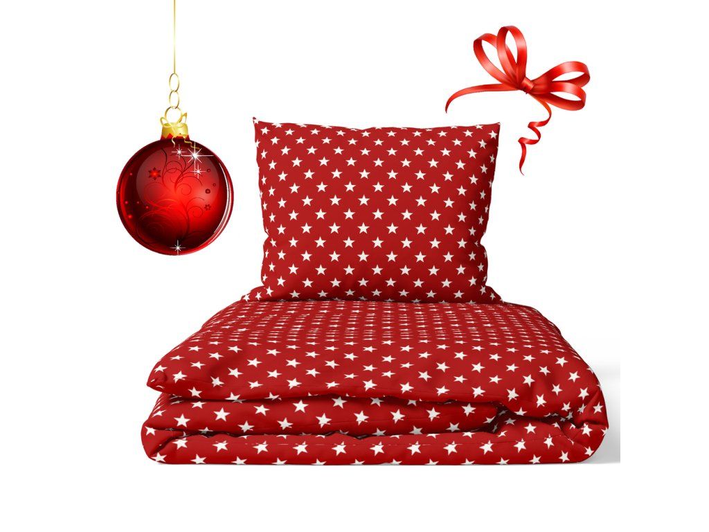DETSKÉ vianočné posteľné obliečky 160x200 pre dieťa 100% bavlna CERTIFIKÁT Červené hviezdičky