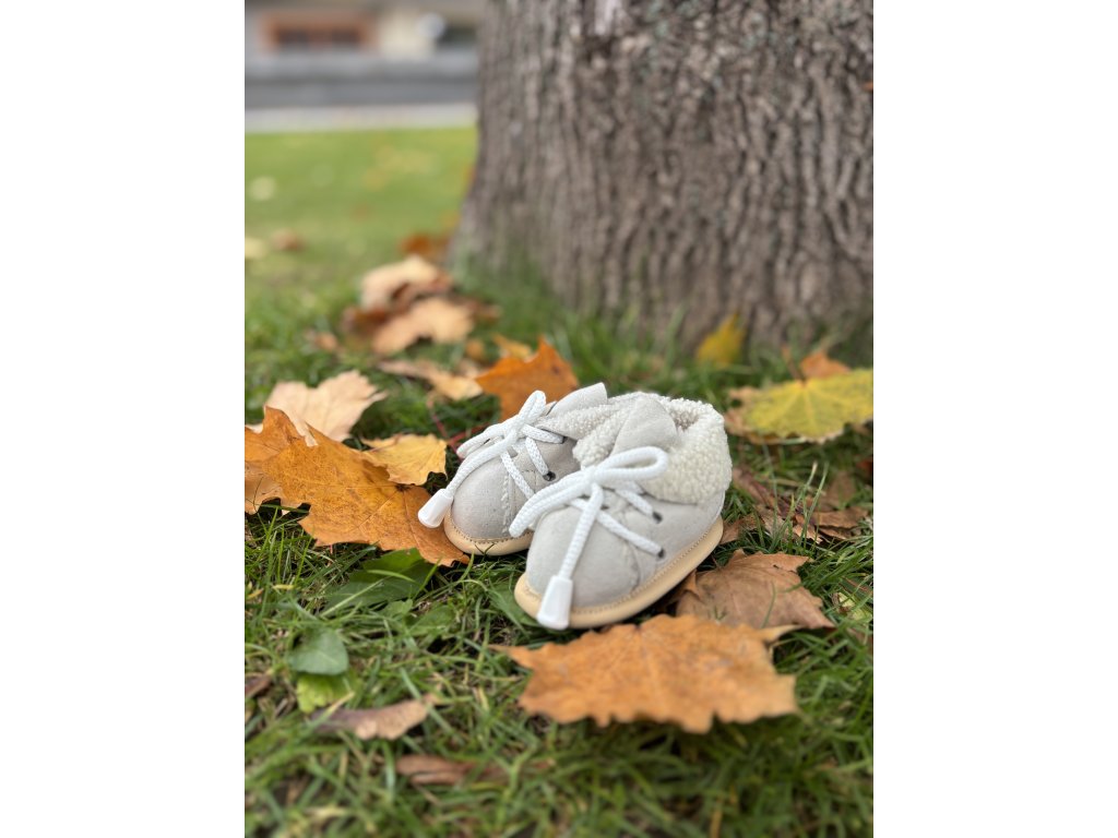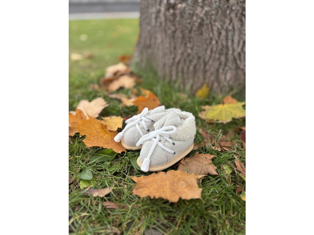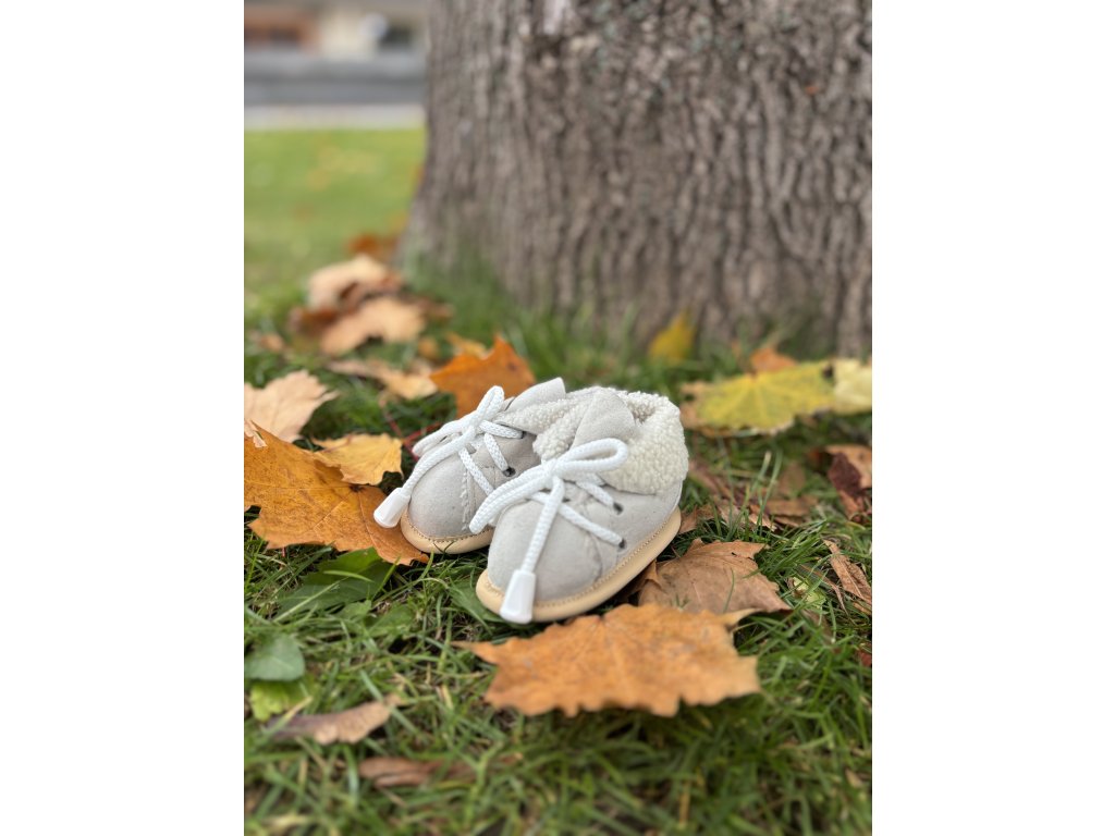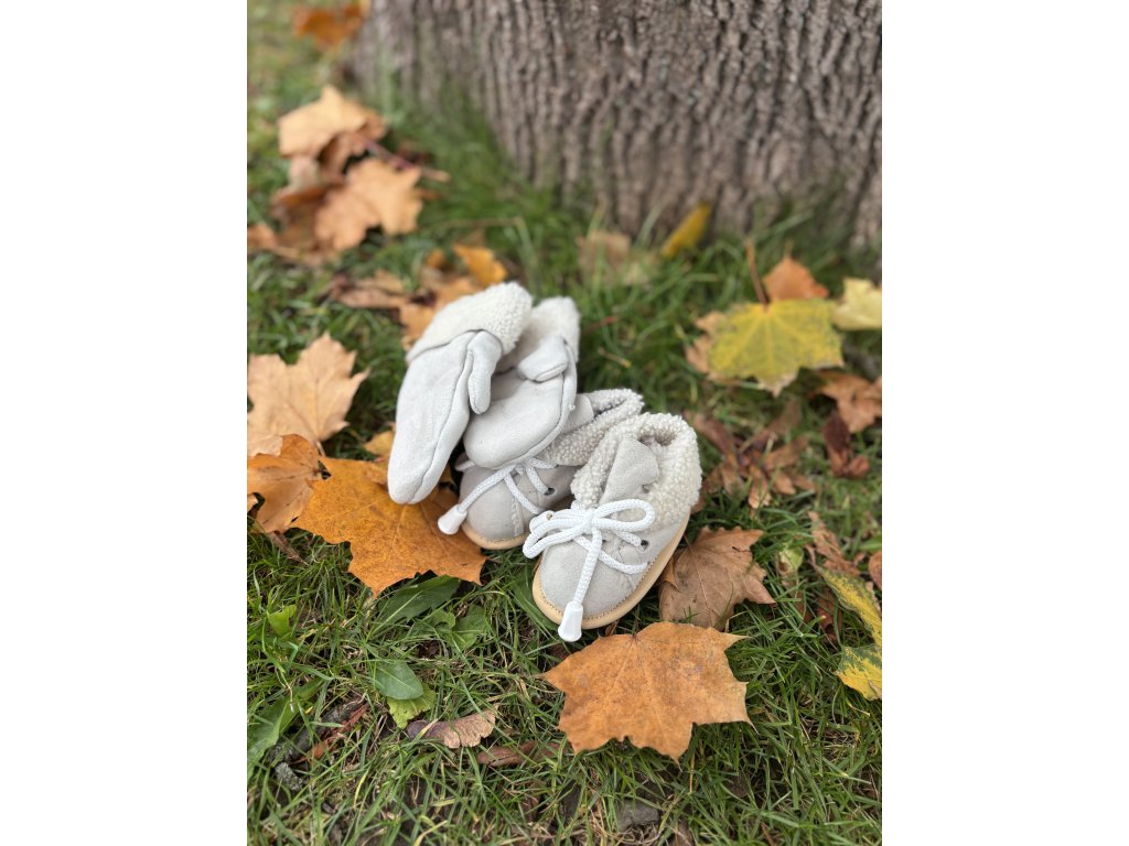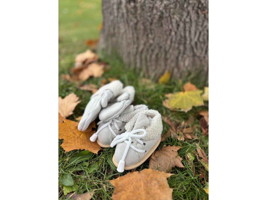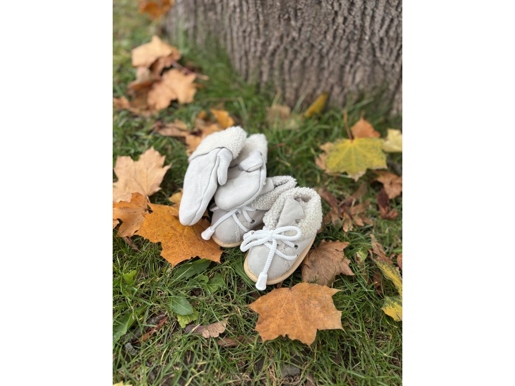 Rukavice aj kapce sú vyrobené z jemnej vlny, ktorá prirodzene reguluje teplotu, odvádza vlhkosť a zostáva priedušná. Vďaka tomu sú detské nožičky a ručičky stále v suchu a teple – bez prehrievania. Mäkká vnútorná vrstva z ovčieho rúna zaručuje maximálne pohodlie, zatiaľ čo odolný vonkajší povrch chráni pred chladom aj vetrom.