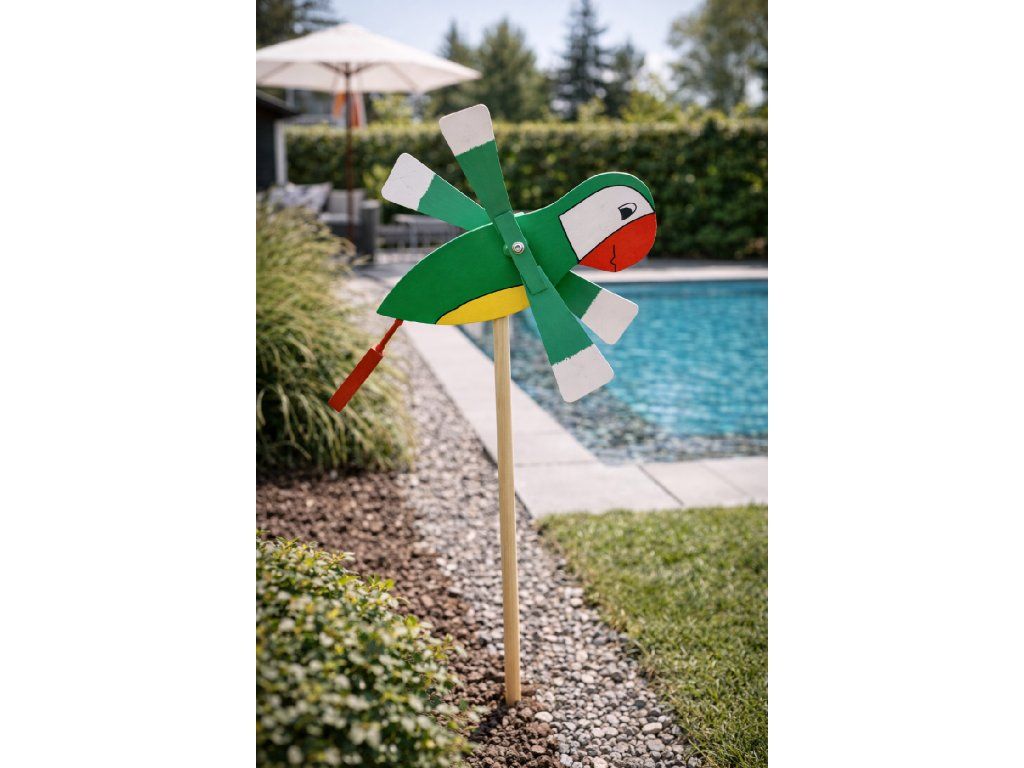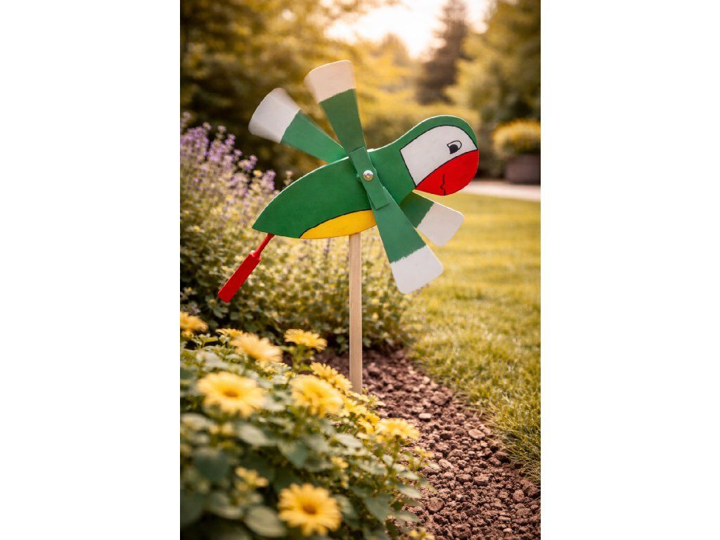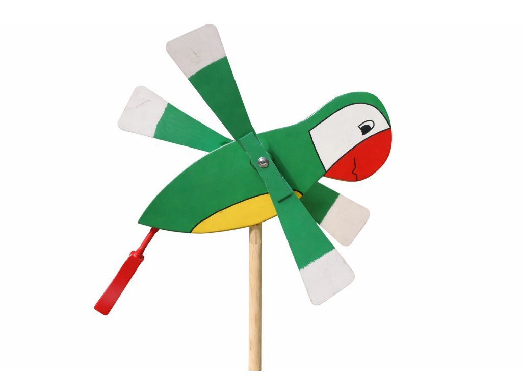 Drevená vrtuľka Papagáj – Farebný záhradný doplnok s pohyblivými krídlami
