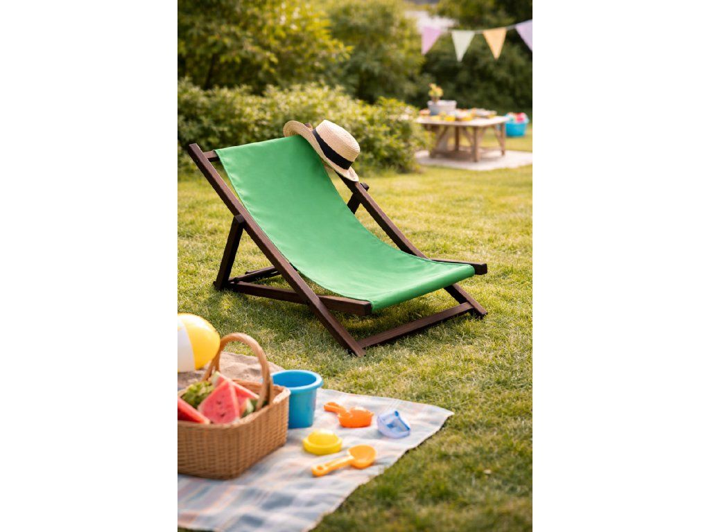 Vyrobené z pevného a odolného dreva, poskytuje maximálnu stabilitu a bezpečnosť. Je ľahké, takže ho deti môžu samé presúvať podľa potreby, no zároveň dostatočne pevné, aby vydržalo dlhodobé používanie. Zelený náter je zdravotne nezávadný, odolný voči poveternostným vplyvom a dodáva lehátku svieži farebný nádych.