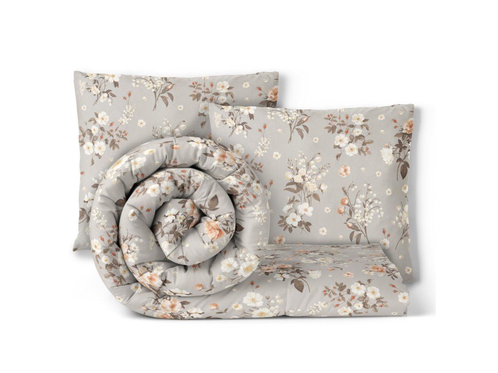 HOTELOVÁ POSTEĽNÁ BIELIZEŇ 160x200cm + 2xOBLIEČKY 70X80 SÚPRAVA POSTEĽNEJ BIELIZNE : Konvalinky sivá béžová