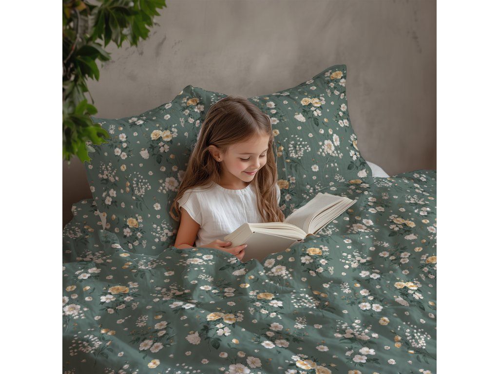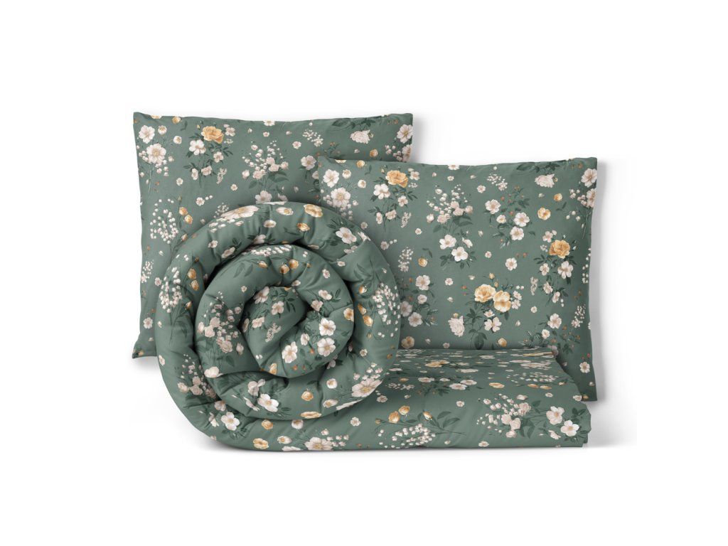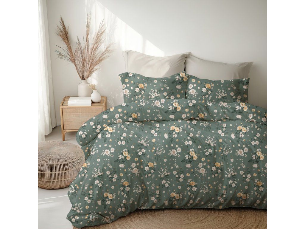 HOTELOVÁ POSTEĽNÁ BIELIZEŇ 160x200cm + 2xOBLIEČKY 70X80 SÚPRAVA POSTEĽNEJ BIELIZNE : Konvalinky zeleň