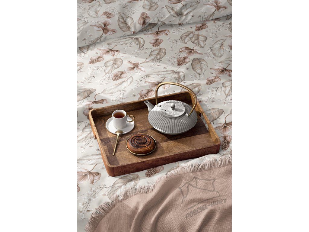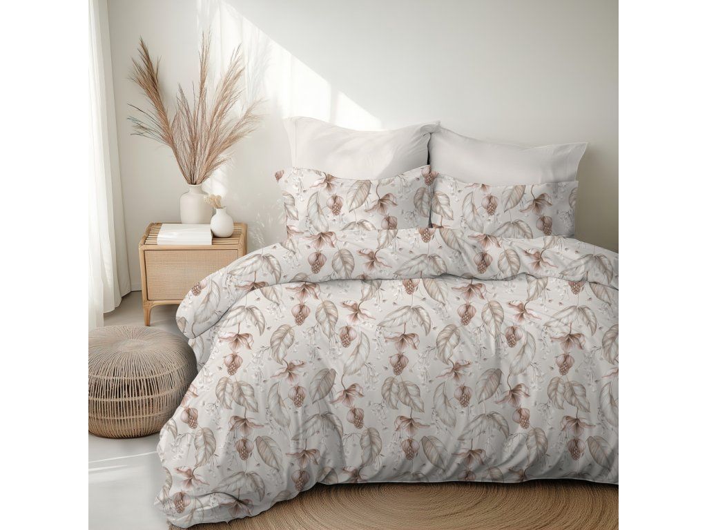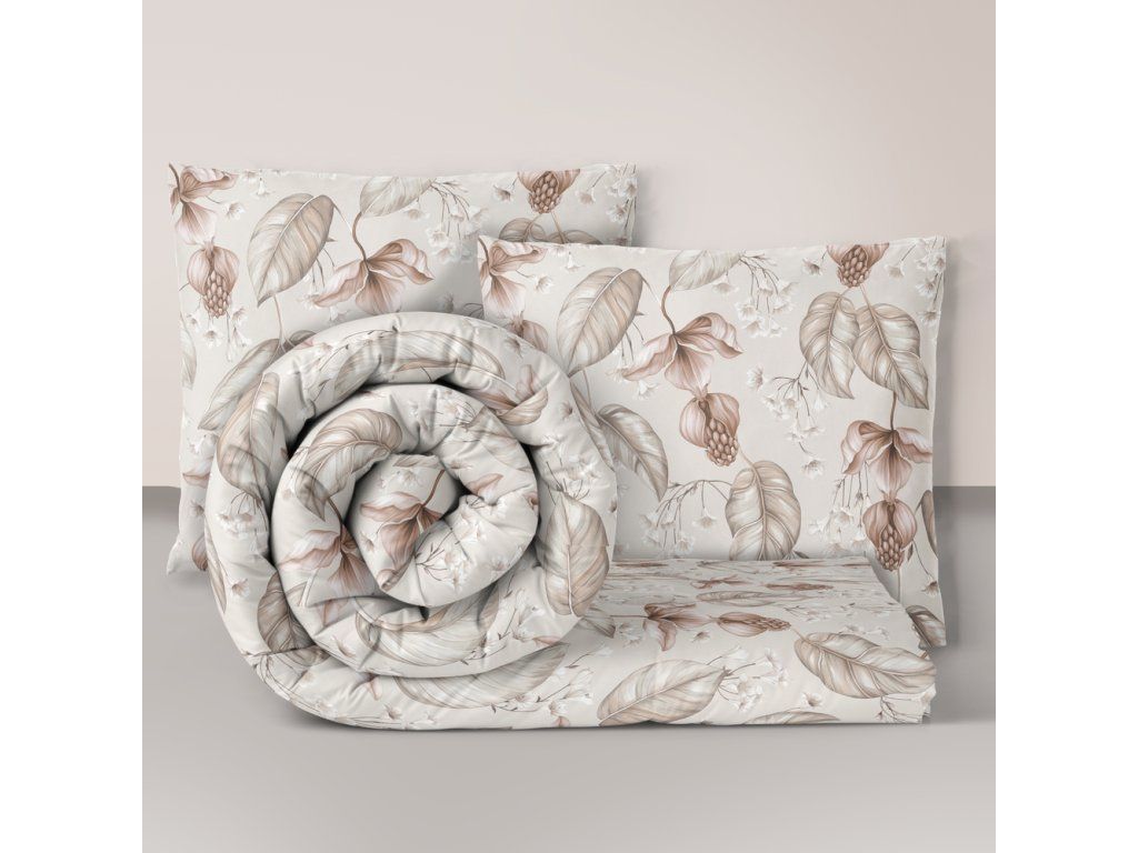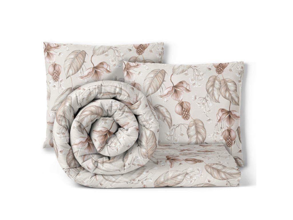 HOTELOVÁ POSTEĽNÁ BIELIZEŇ 160x200cm + 2xOBLIEČKY 70X80 SÚPRAVA POSTEĽNEJ BIELIZNE : Kvet púšte béžový