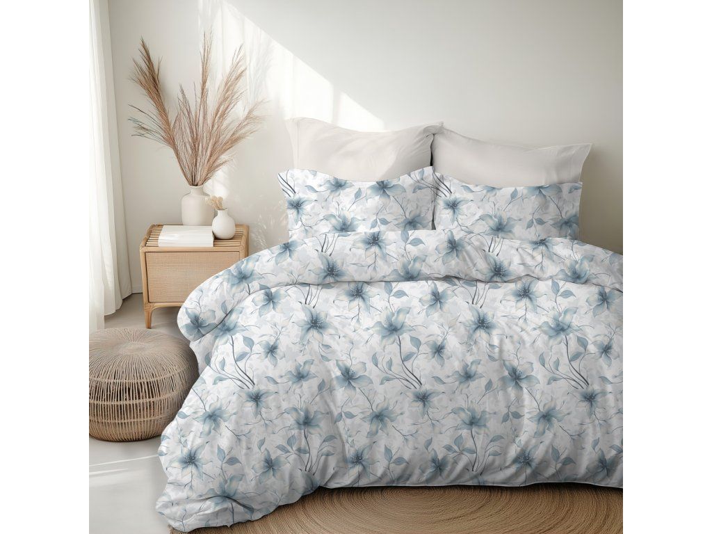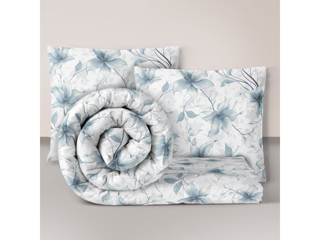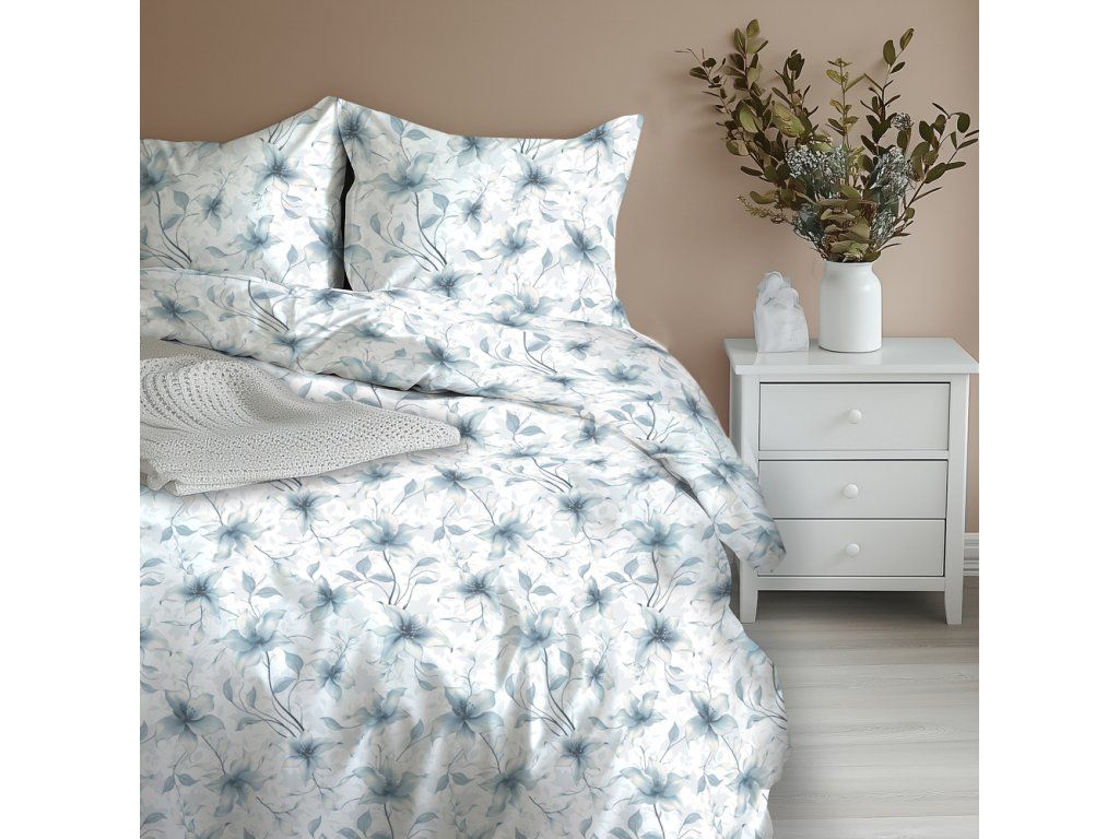 HOTELOVÁ POSTEĽNÁ BIELIZEŇ 160x200cm + 2xOBLIEČKY 70X80 SÚPRAVA POSTEĽNEJ BIELIZNE : Perlová vanilka modrá