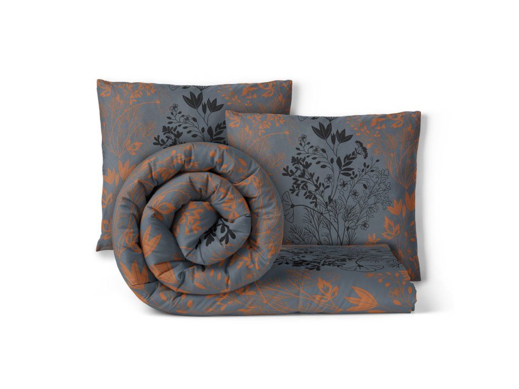 HOTELOVÁ POSTEĽNÁ BIELIZEŇ 160x200cm + 2xOBLIEČKY 70X80 SÚPRAVA POSTEĽNEJ BIELIZNE : Spiaca lúka grafit