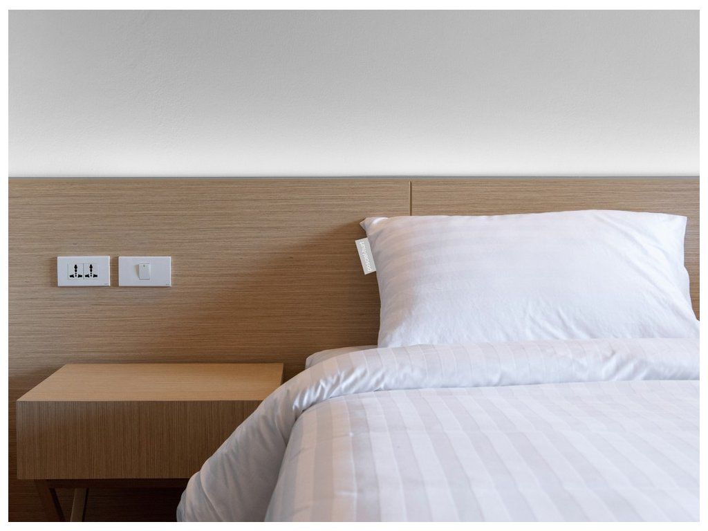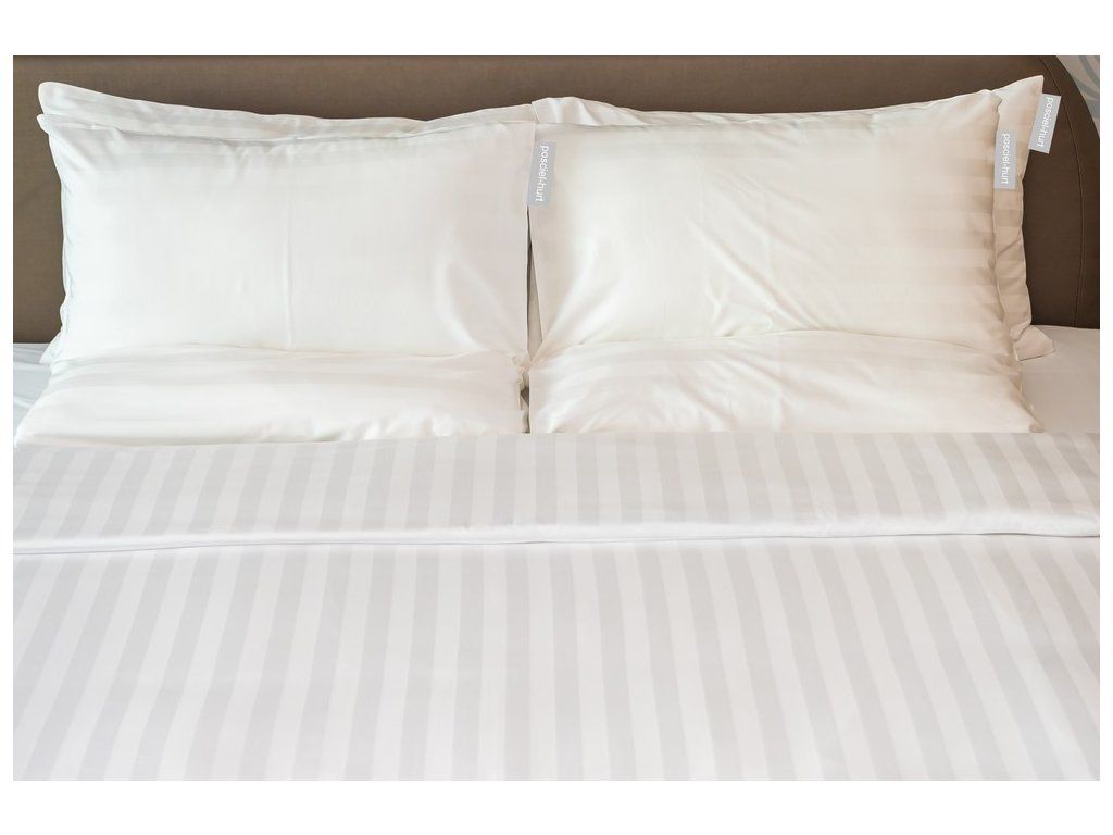 Súprava posteľnej bielizne pre hotely v bielej farbe, vyrobená z mikrovlákna. Hotelová posteľná bielizeň je ľahká so špeciálnymi chlopňami, ktoré umožňujú rýchlu a jednoduchú výmenu. Posteľná bielizeň tkaná v pruhoch so šírkou 1 cm (zvislé pruhy na obliečke na paplón a obliečke).