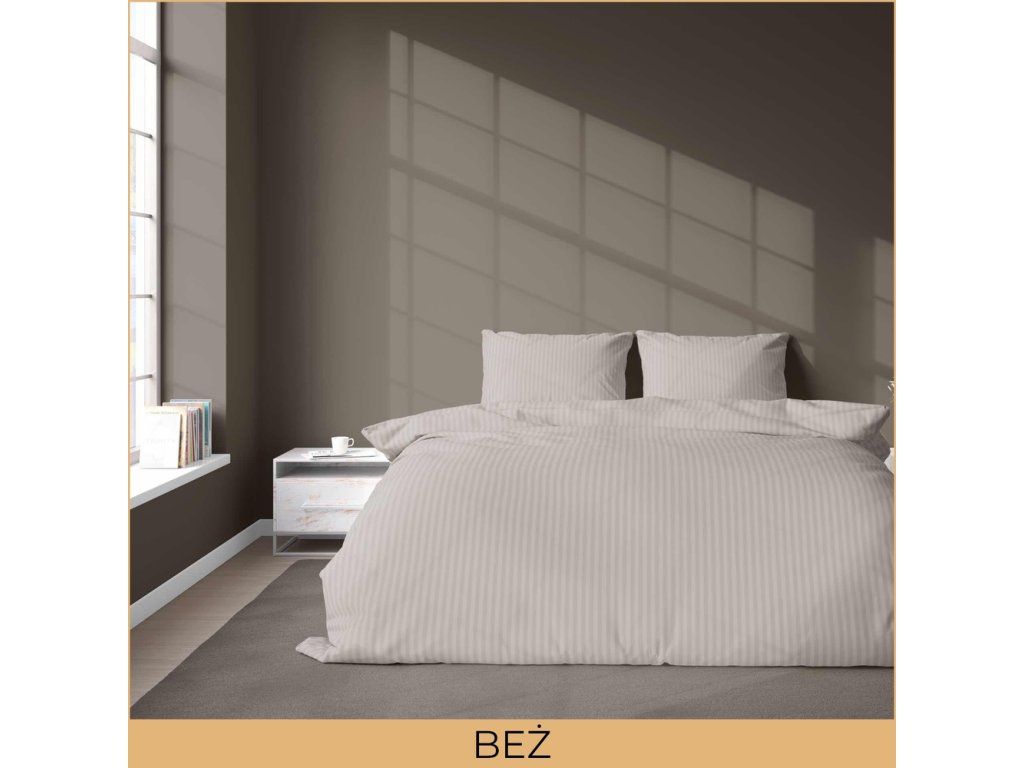 Tkanina vyrobená z najkvalitnejších vlákien s krásnym leskom a saténovo-atlasovou väzbou. Posteľná bielizeň je vyrobená zo 100% bavlny. Obliečka na paplón so zapínaním na zips. Pruhy so šírkou 2cm alebo 1cm – prosíme o výber šírky pruhov z rozbaľovacieho zoznamu vyššie. Posteľnú bielizeň je možné vyvárať, škrobiť a žehliť.