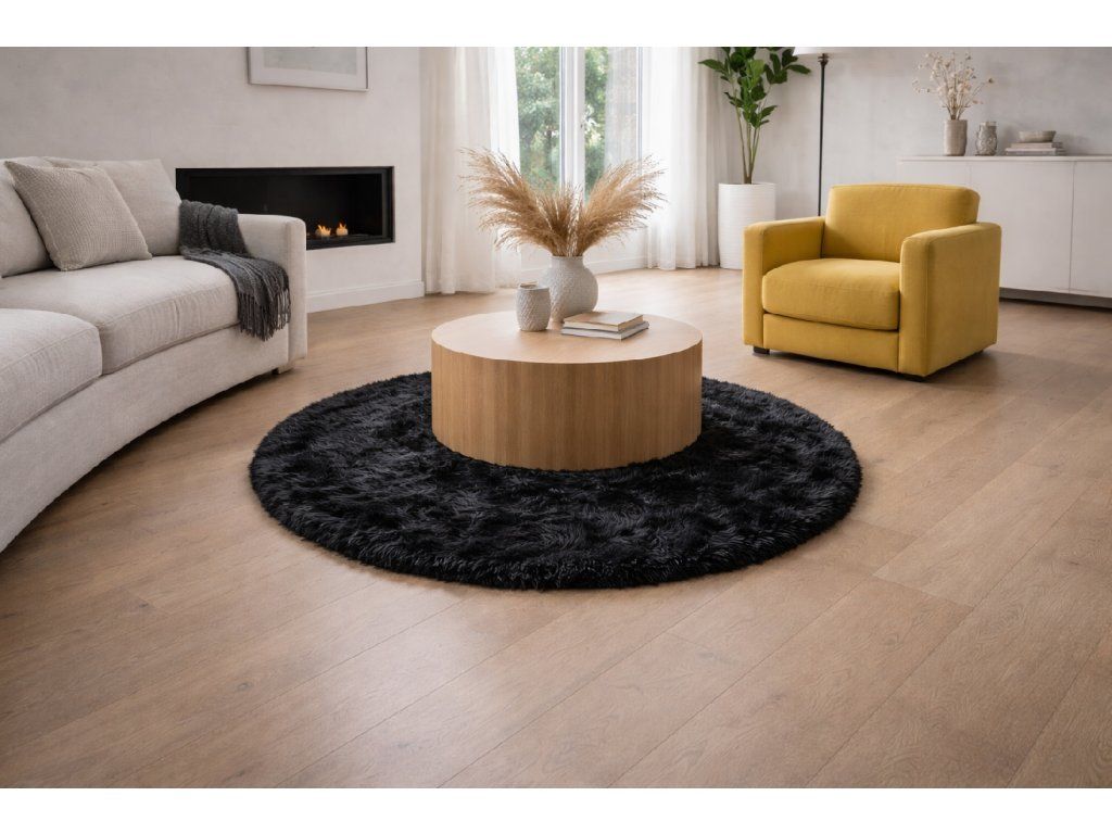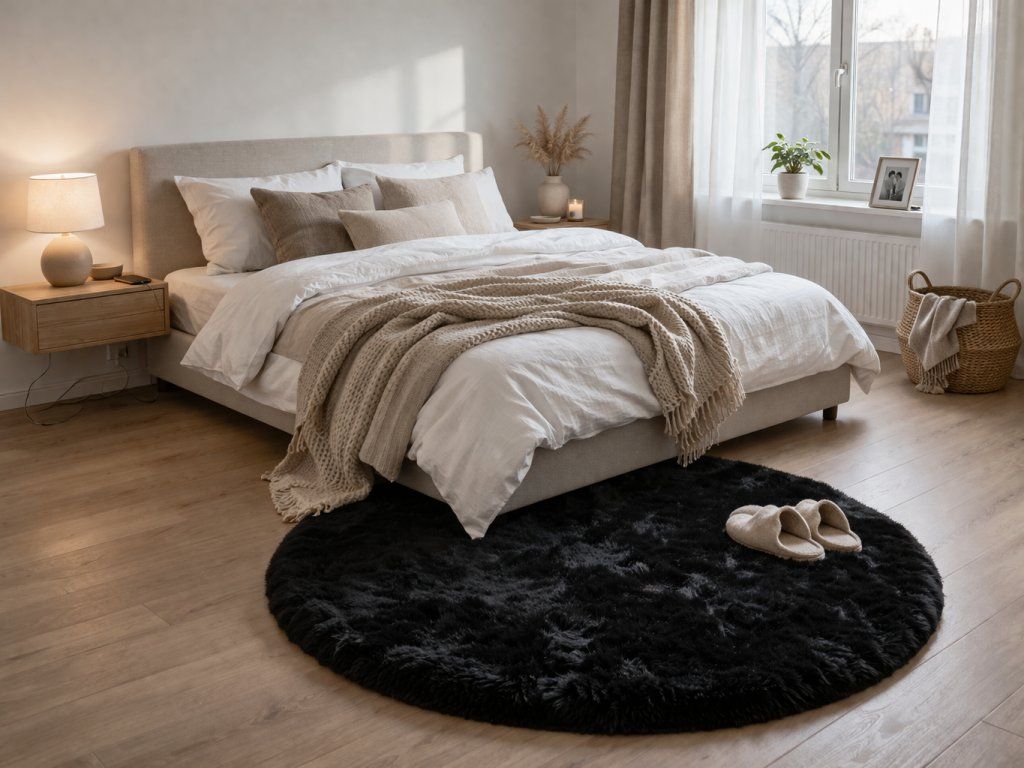 Čierny koberec z ovčej kožušiny – kruhový luxus, ktorý rozžiari každý interiér