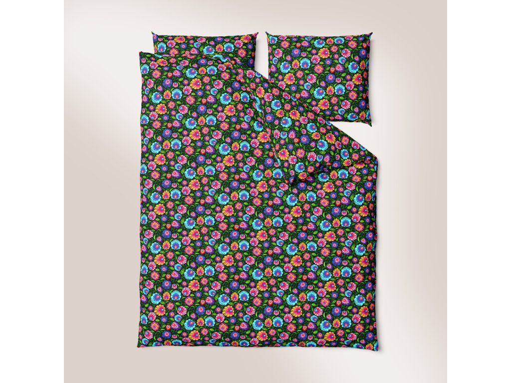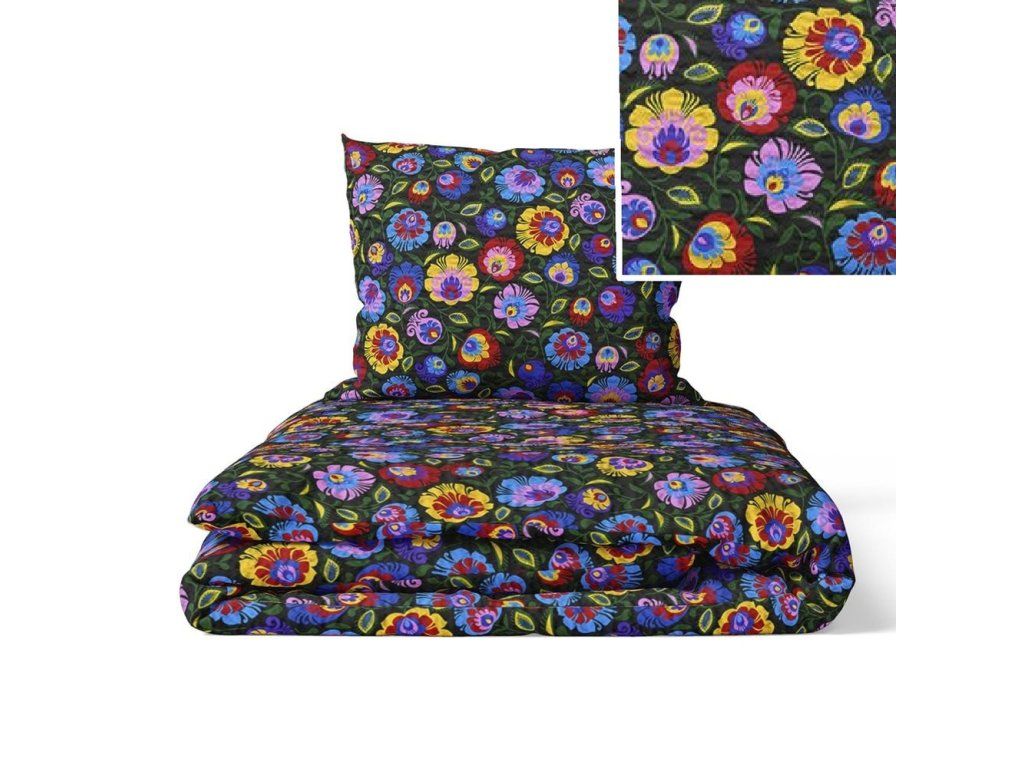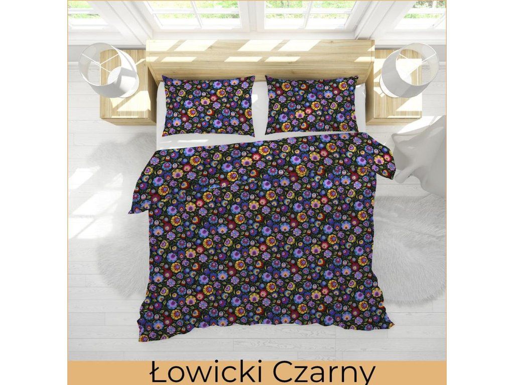 KÔROVÉ OBLIEČKY 160x200 + OBLIEČKA 70x80 HRUBÁ BAVLNA - Łowicki čierny