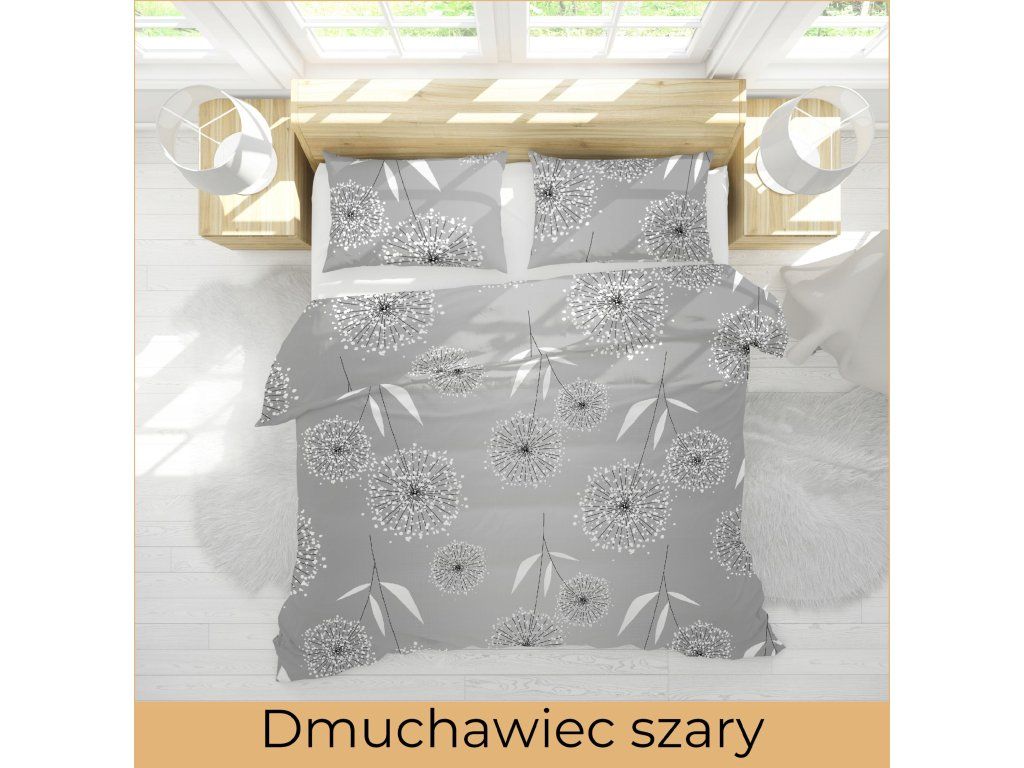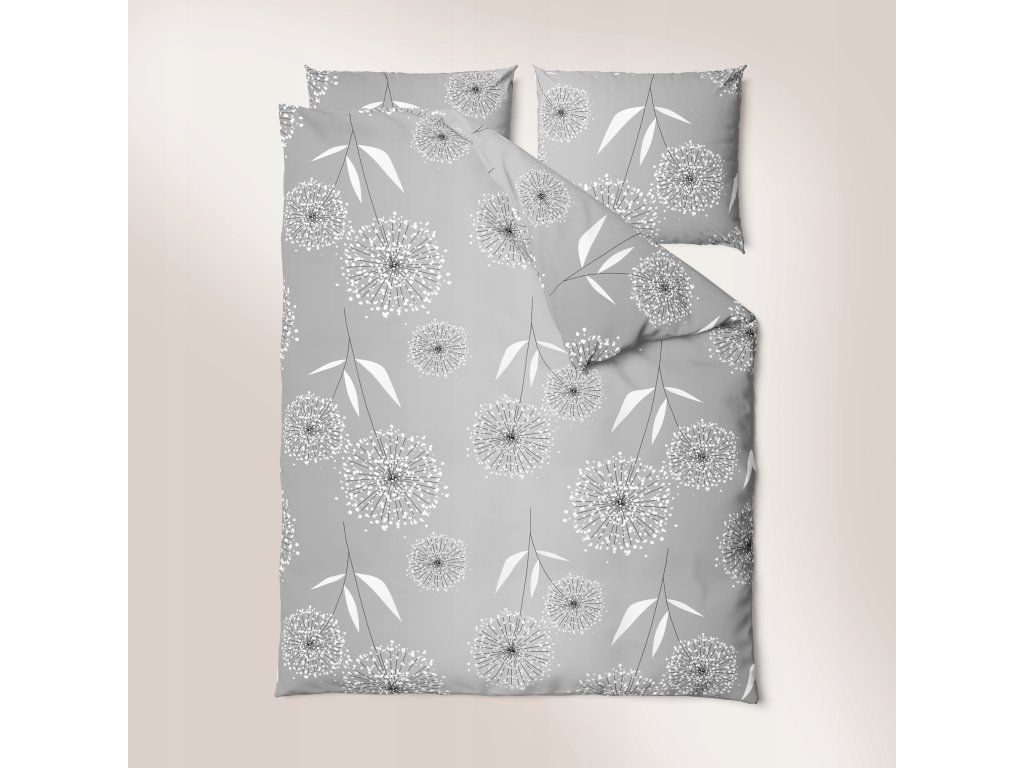 Kôrové obliečky 220x200 + 2 obliečky PREMIUM 100% bavlna : Sivá púpava