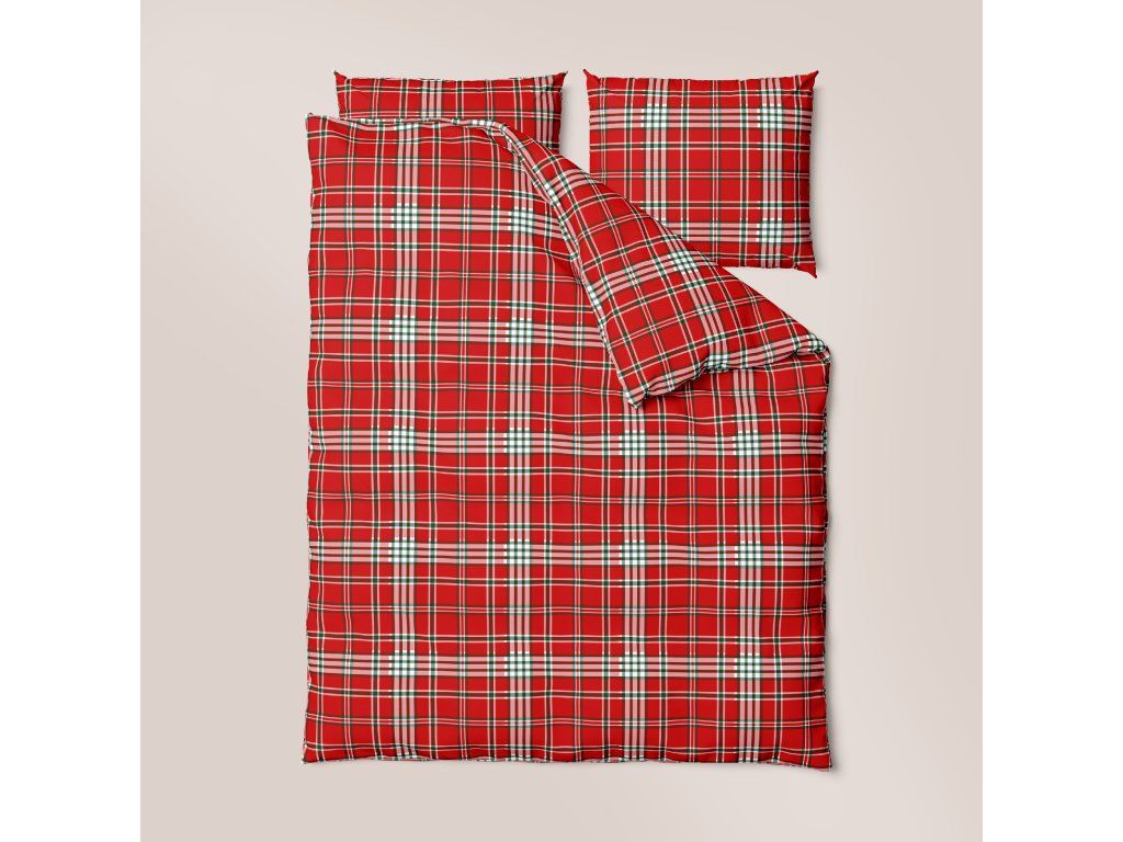 Kôrové posteľné obliečky 160x200 + 2x70x80 100% bavlna Bielawa - Červené káro