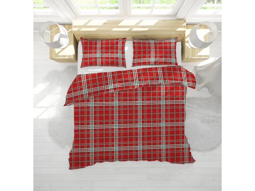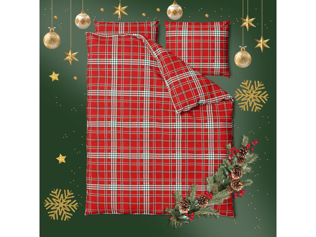KÔROVÉ POSTEĽNÉ OBLIEČKY 160x200 + OBLIEČKA 70x80 Vianočné HRUBÁ BAVLNA Červené káro