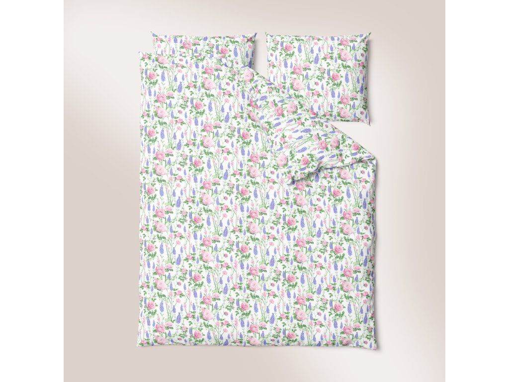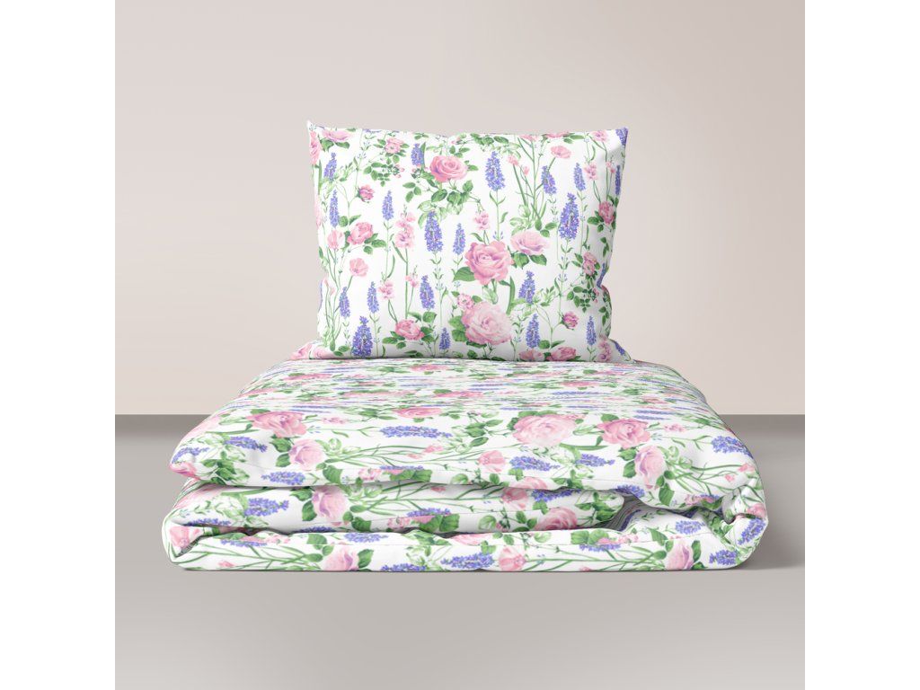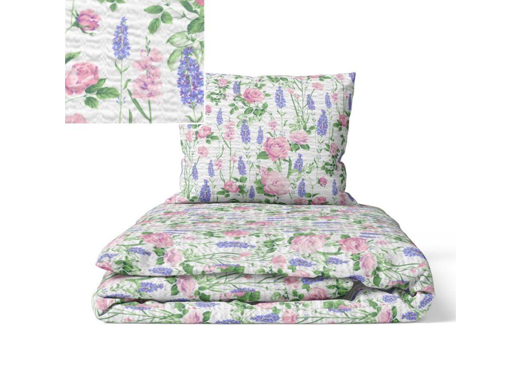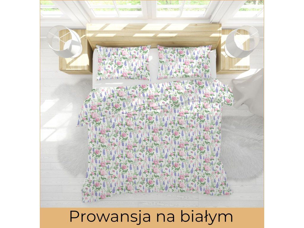 Kôrové posteľné obliečky 200x220 cm + 2x 70x80 cm, vzor: Provensálsko na bielom