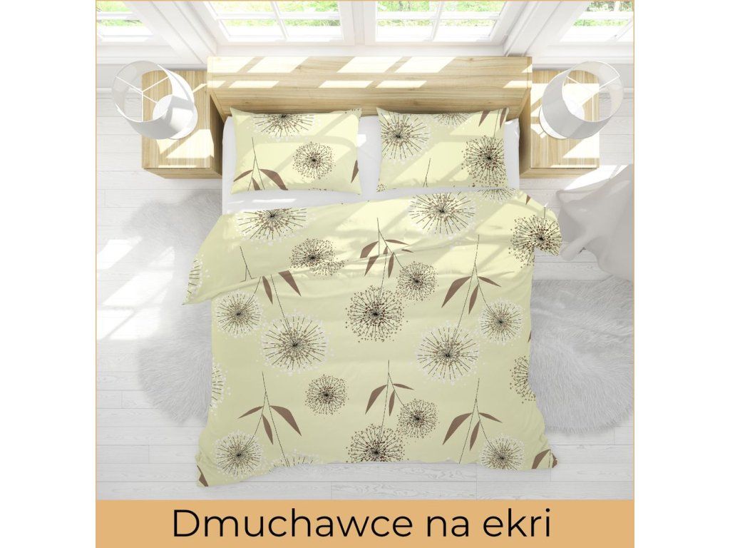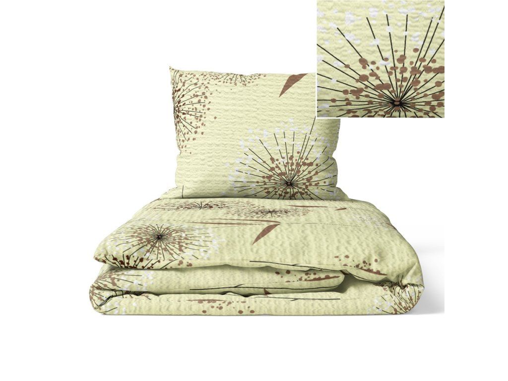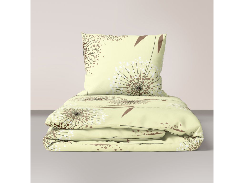 Kôrové posteľné obliečky 200x220 cm + 2x 70x80 cm, vzor: Púpava ecru