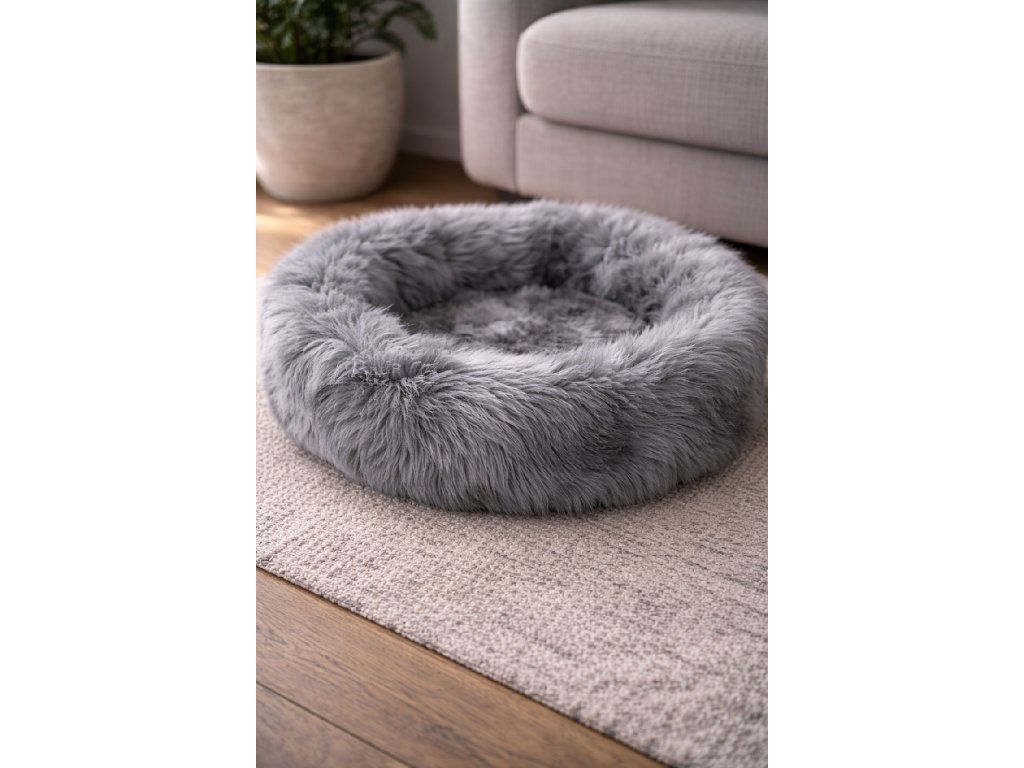 Sivý kožušinový pelech pre psa – 60 cm pohodlia z prírody