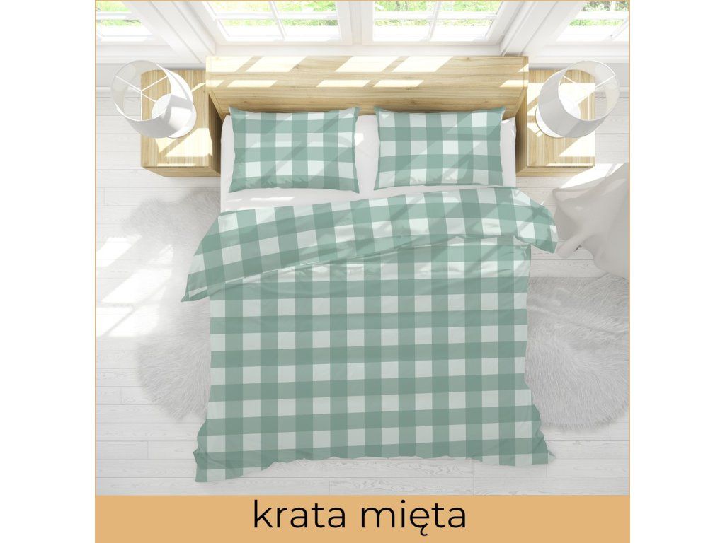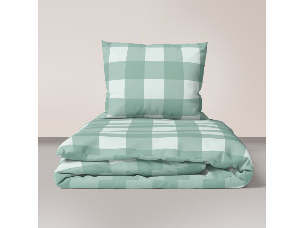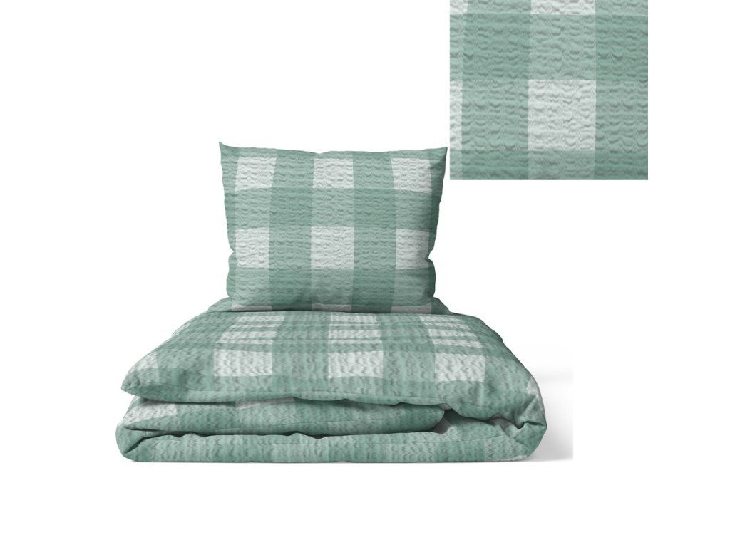 Krepová posteľná bielizeň 140x200 + obliečka 70x80 - kocka mäta