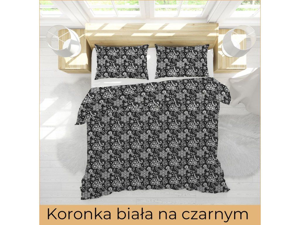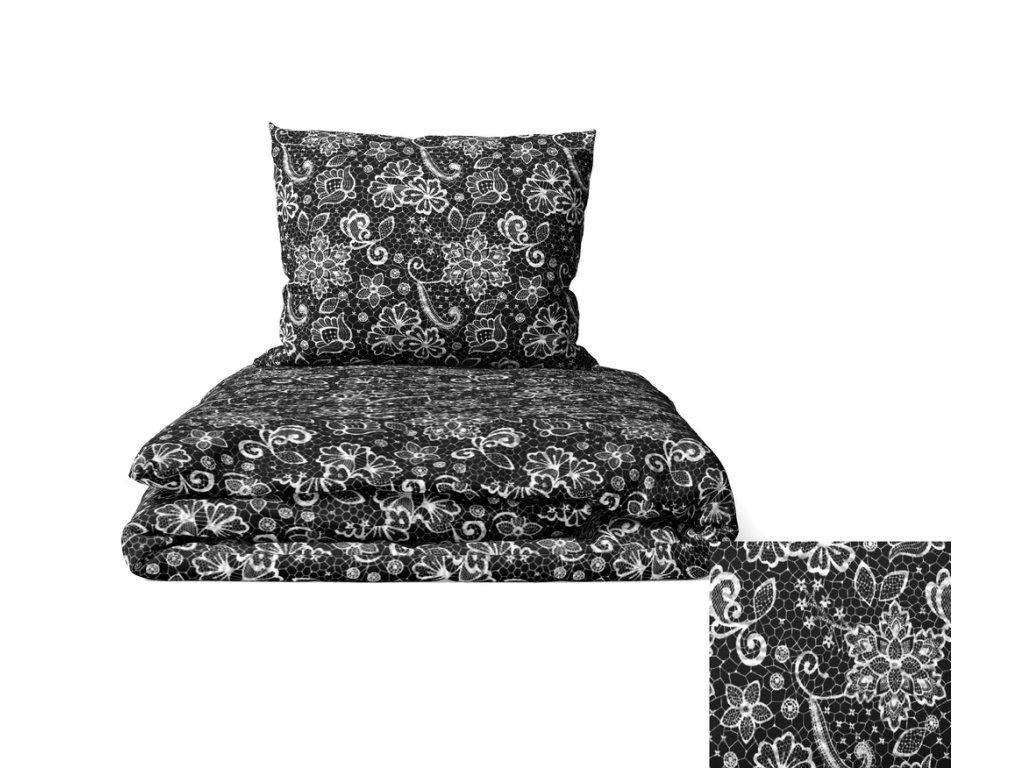 Krepová posteľná bielizeň 160x200 + 2x70x80 bavlnená Bielawa - Biela čipka na čiernom