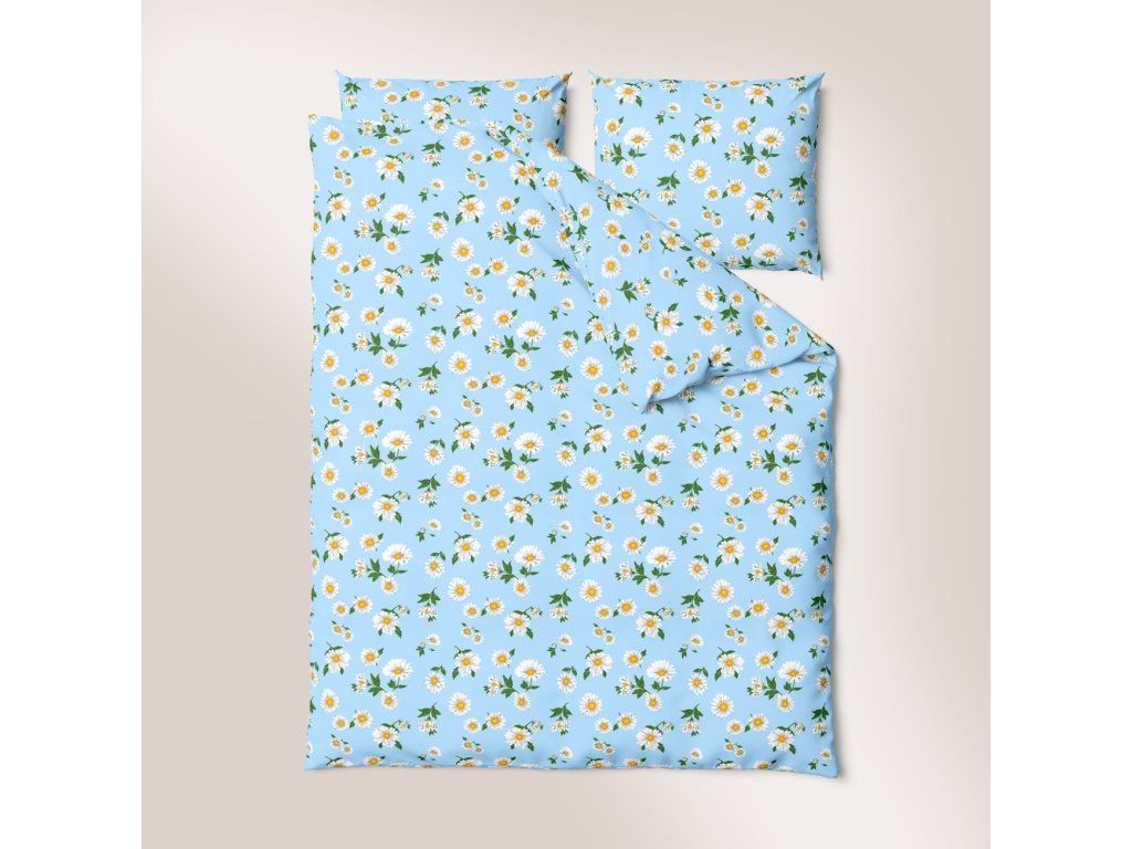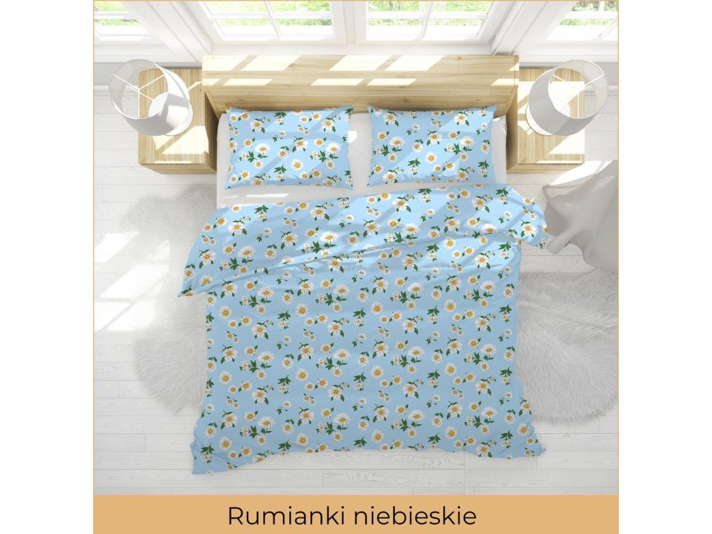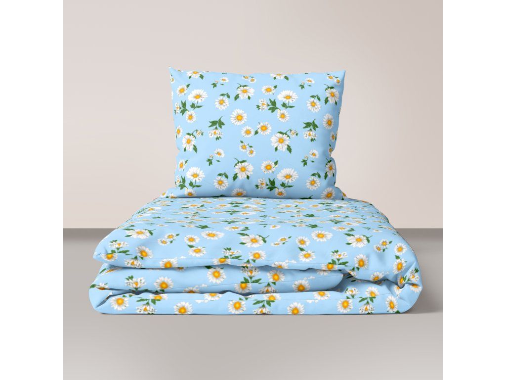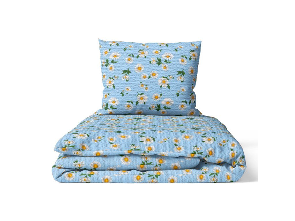 KREPOVÁ POSTEĽNÁ BIELIZEŇ 160x200 + OBLIEČKA 70x80 HRUBÁ BAVLNA - Modré rumančeky