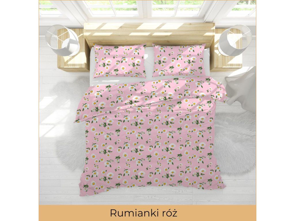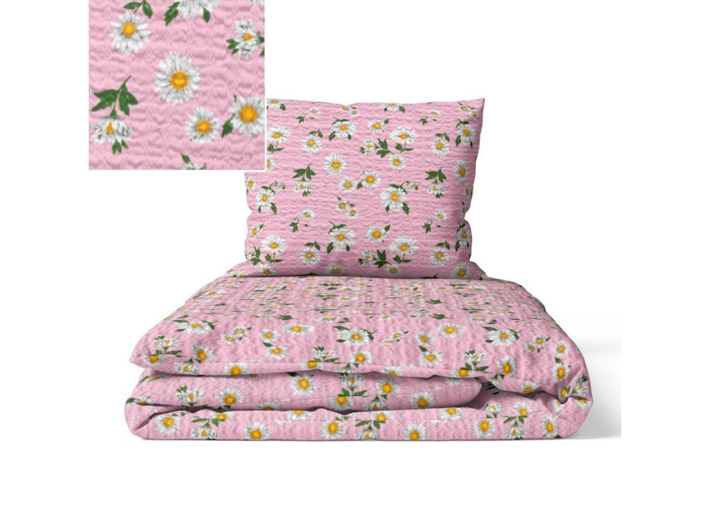 KREPOVÁ POSTEĽNÁ BIELIZEŇ 160x200 + OBLIEČKA 70x80 HRUBÁ BAVLNA - Ružové rumančeky