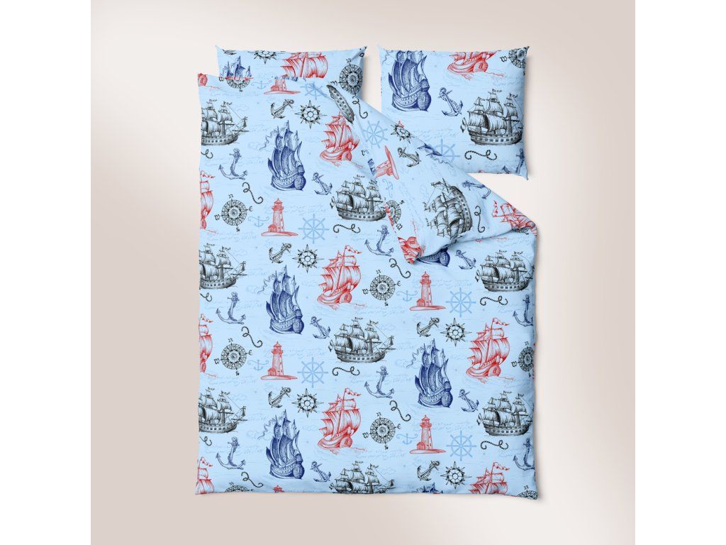 Krepová posteľná bielizeň 220x200 + 2 obliečky PREMIUM 100% bavlna: Bałtyk Niebieski