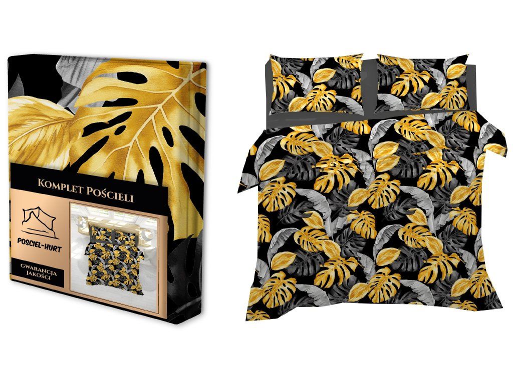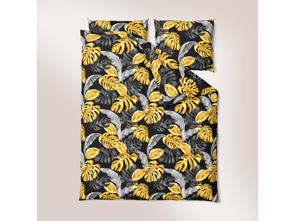 Krepová posteľná bielizeň 220x200 + 2 obliečky PREMIUM 100% bavlna : Čierne listy 3D