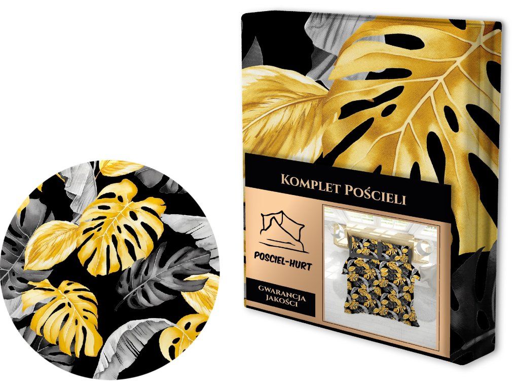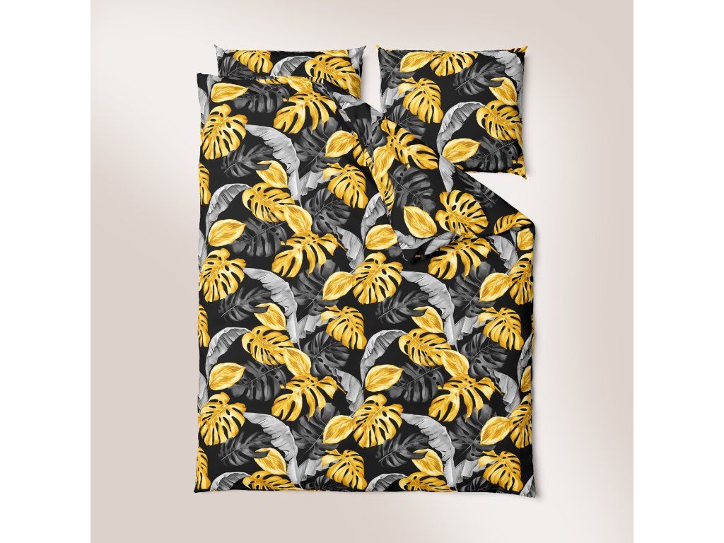 Súprava posteľnej bielizne z krepovej bavlny 140x200cm s jednou obliečkou na vankúš 70x80cm, 100% bavlna, vzor: Čierne 3D listyDodatočné parametre