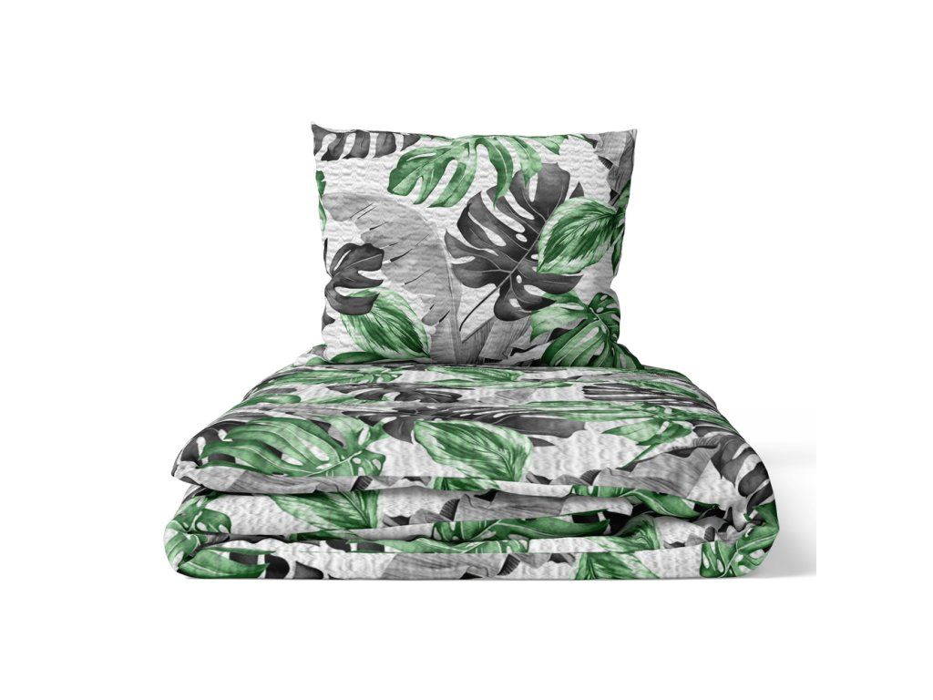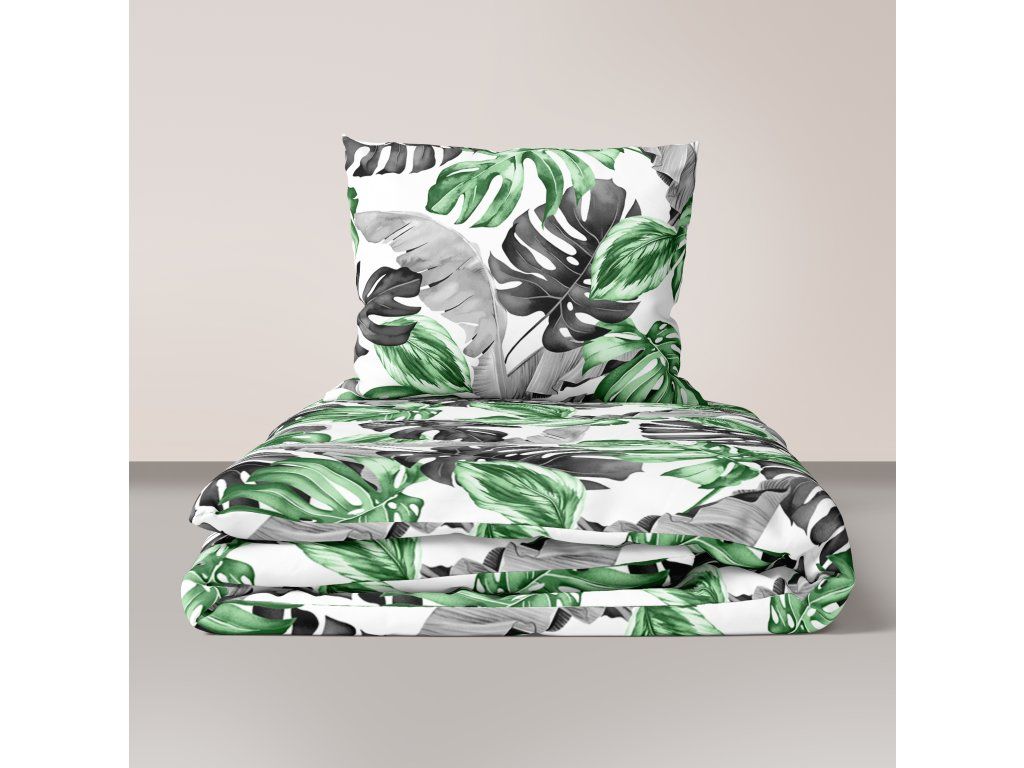 Súprava posteľnej bielizne z krepovej bavlny 140x200cm s jednou obliečkou na vankúš 70x80cm, 100% bavlna, vzor: Zelené 3D listyDodatočné parametre