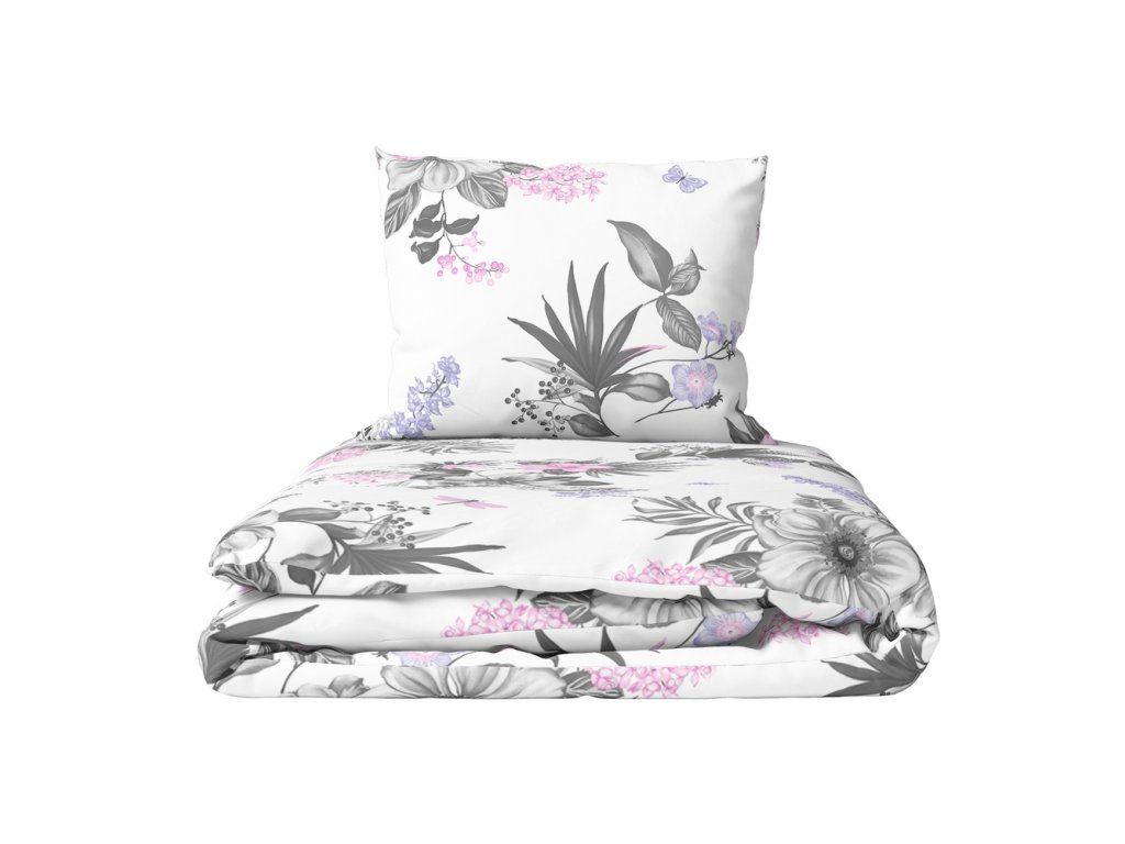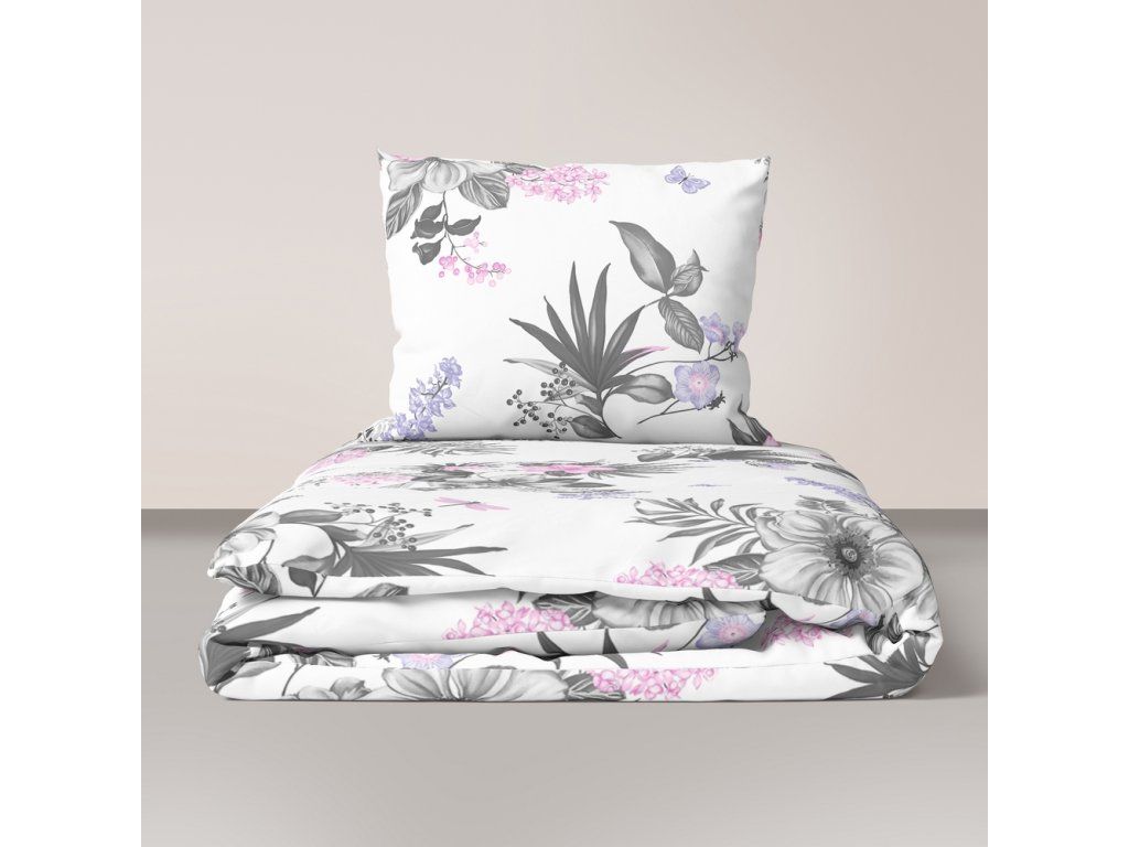 Súprava posteľnej bielizne z krepovej bavlny 140x200cm s jednou obliečkou na vankúš 70x80cm, 100% bavlna, vzor: Zimná záhradaDodatočné parametre