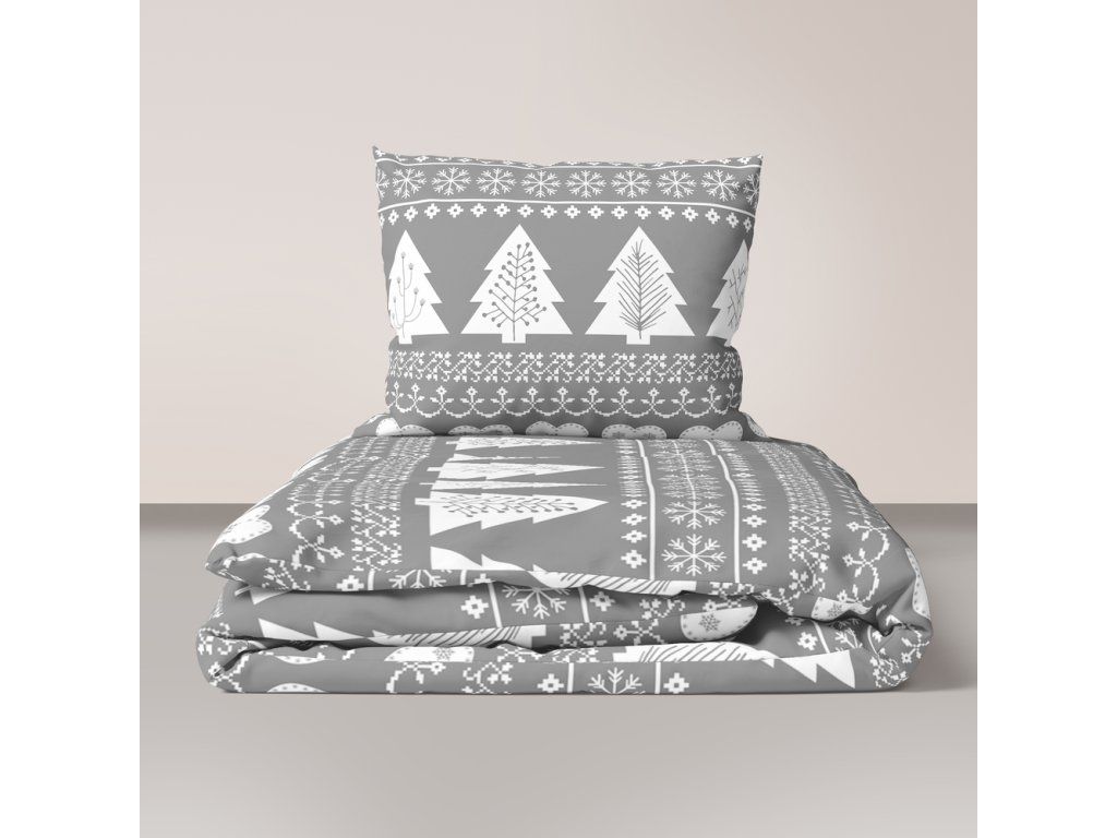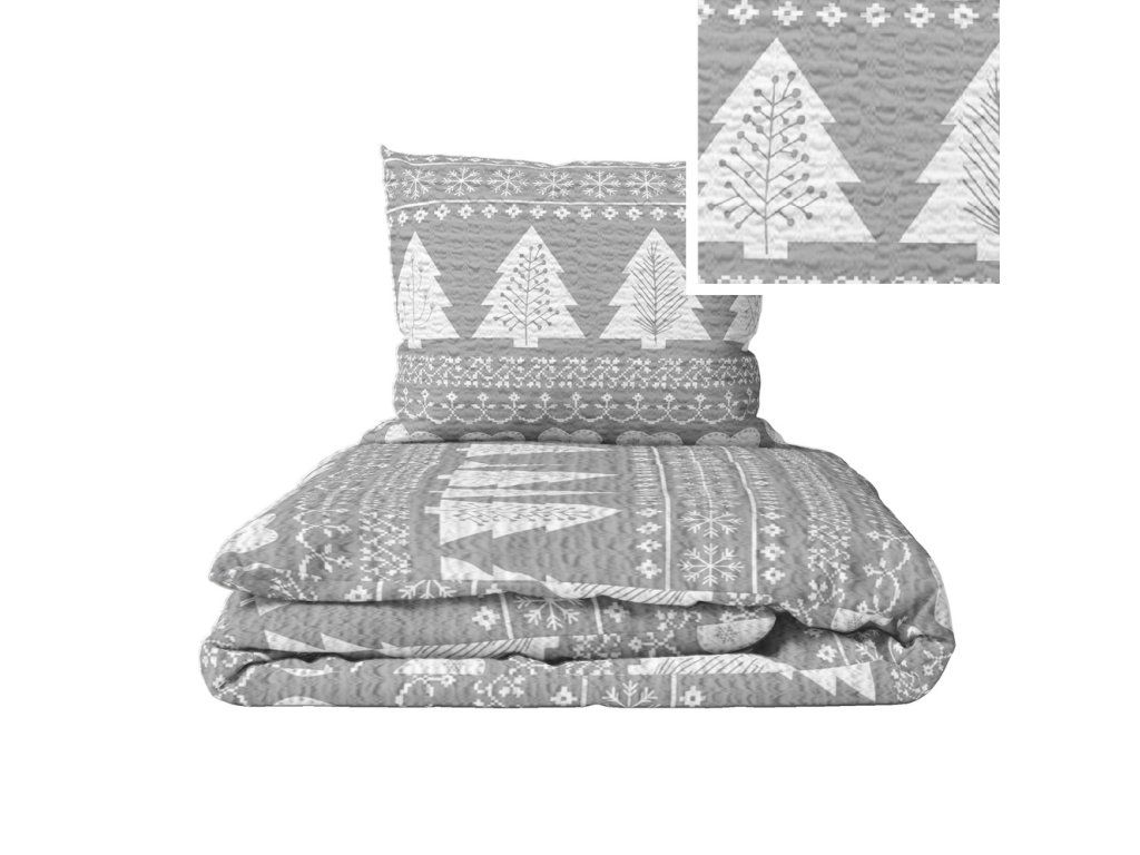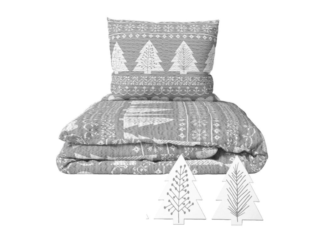 Krepové obliečky 140x200 + 1x70x80 Bavlna 100% Bielawa - Sivý stromček