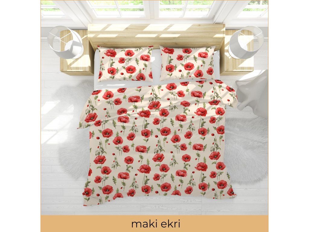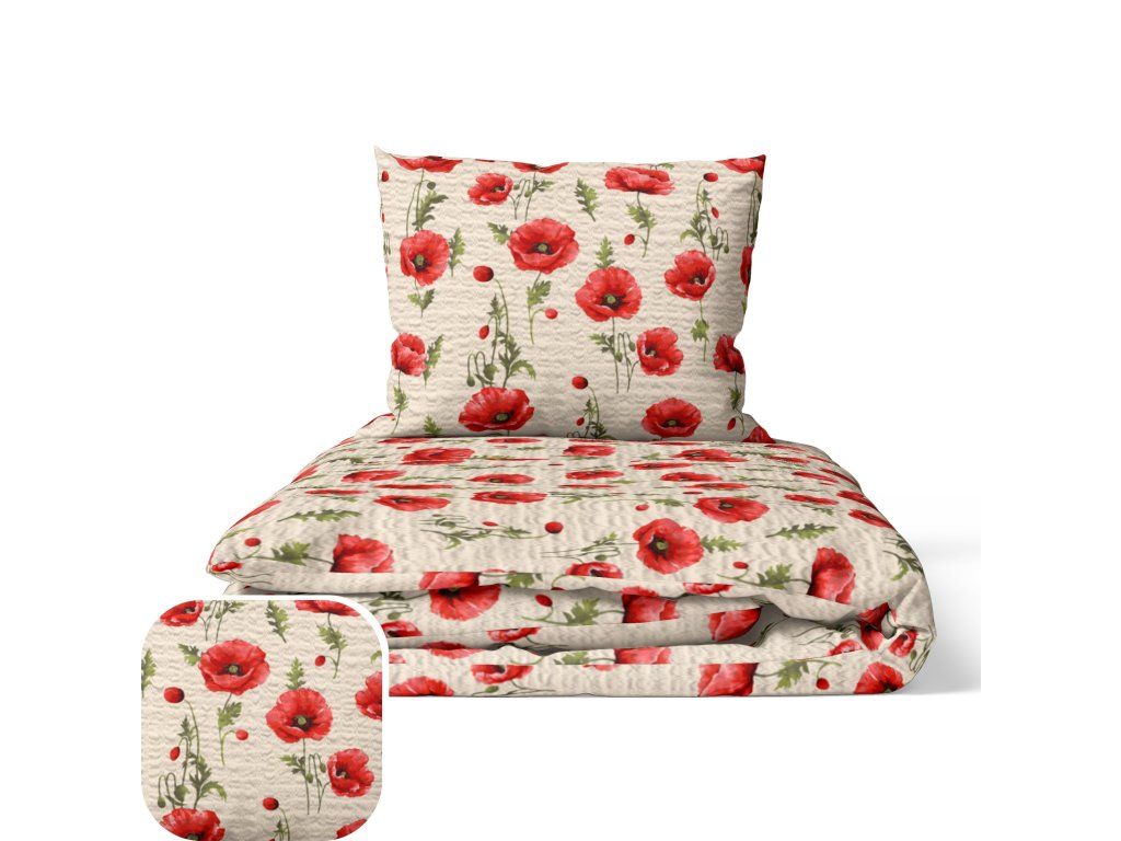 Krepové obliečky 140x200 + obliečka 70x80 - maky ecru