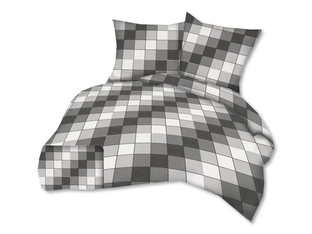 Krepové obliečky 140x200 + obliečka na vankúš 70x80 - Káro 3D grafit
