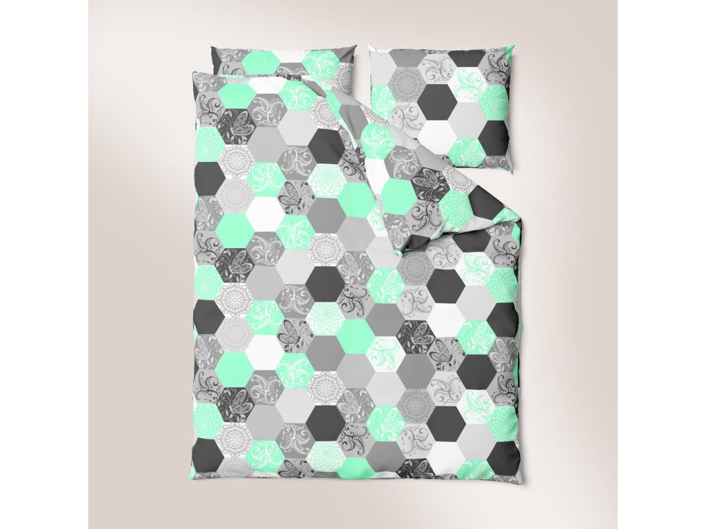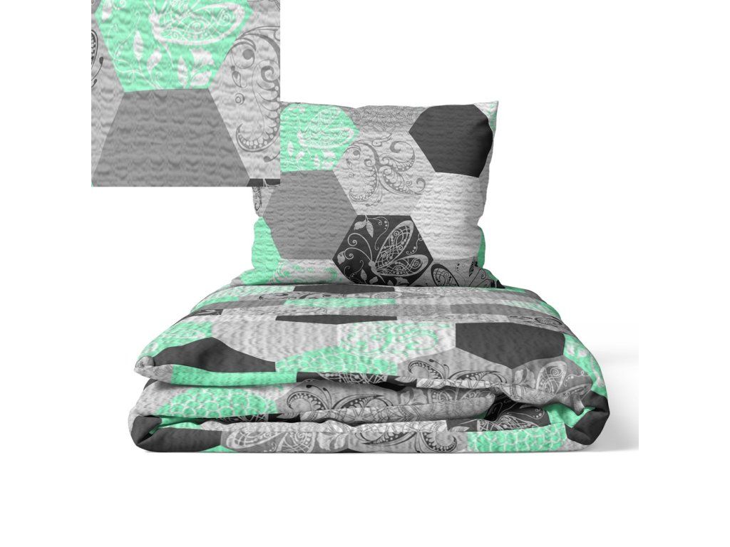 Krepové obliečky 140x200 + obliečka na vankúš 70x80 - Medové plásty mäta
